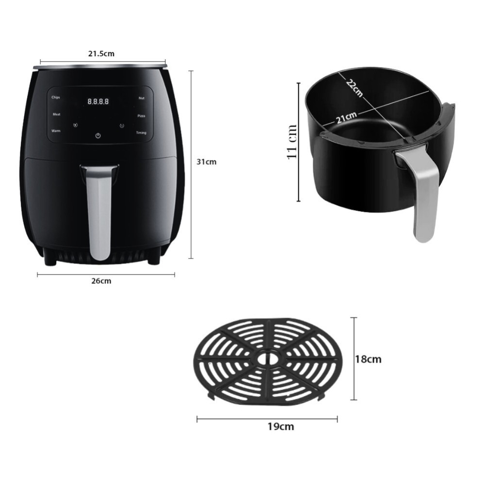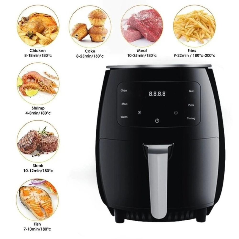 Прибор с использованием низкого содержания жира мощностью 3000 Вт нагревается всего за 2-3 минуты и использует технологию быстрой циркуляции горячего воздуха, чтобы готовить пищу намного быстрее, чем обычная духовка. Это идеально подходит для занятых домохозяйств и для экономии на ваших счетах за электроэнергию тоже!