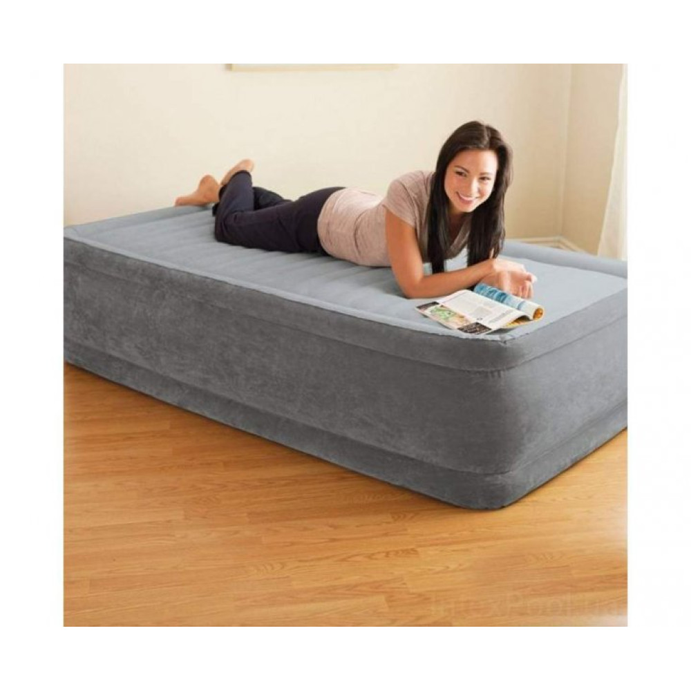 Новейшая модель надувной кровати фирмы Intex - кровать серии Comfort-Plush, при изготовлении применялась инновационная технология Fiber-Tech! Внутренняя конструкция данного образца надувной кровати представляет собой миллионы невероятно прочных полиэстерных нитей, что в корне отличает ее от стандартных моделей и обеспечивает долговечность кровати в течении многих лет.