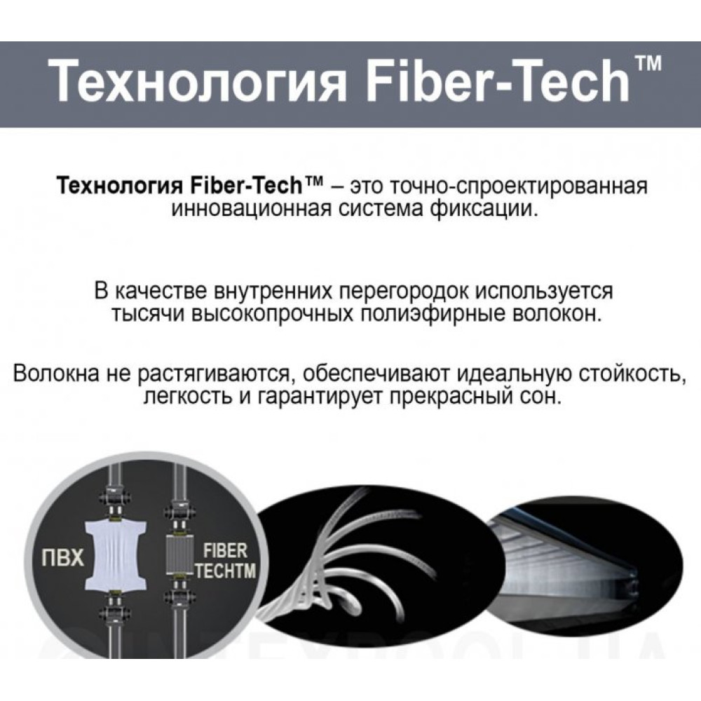 Внутренняя система поддержки Технология Fiber-Tech™ – это точно-спроектированная инновационная система фиксации. В качестве внутренних перегородок используется не материал ПВХ, а тысячи высокопрочных полиэфирных волокон. В отличие от традиционной конструкции, эти волокна не растягиваются, обеспечивают идеальную стойкость, легкость и гарантирует прекрасный сон.