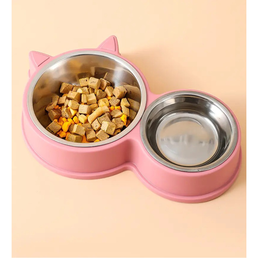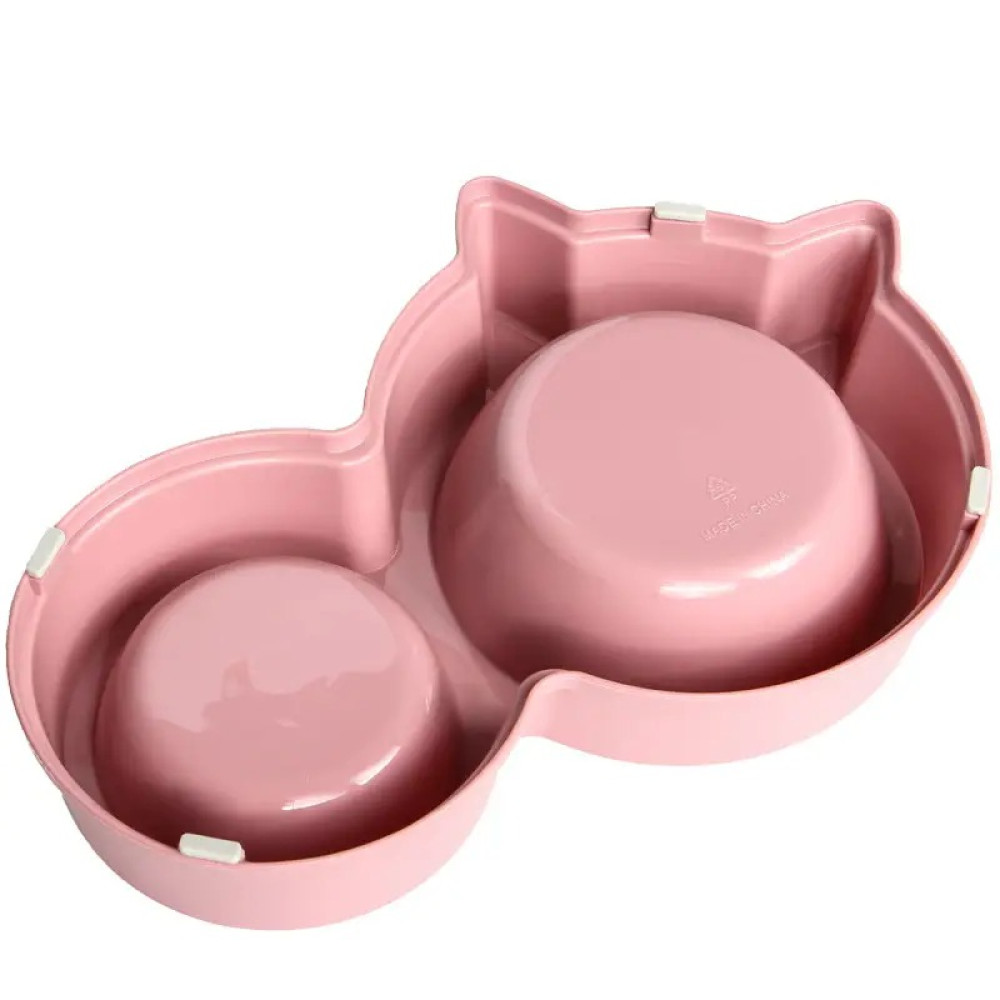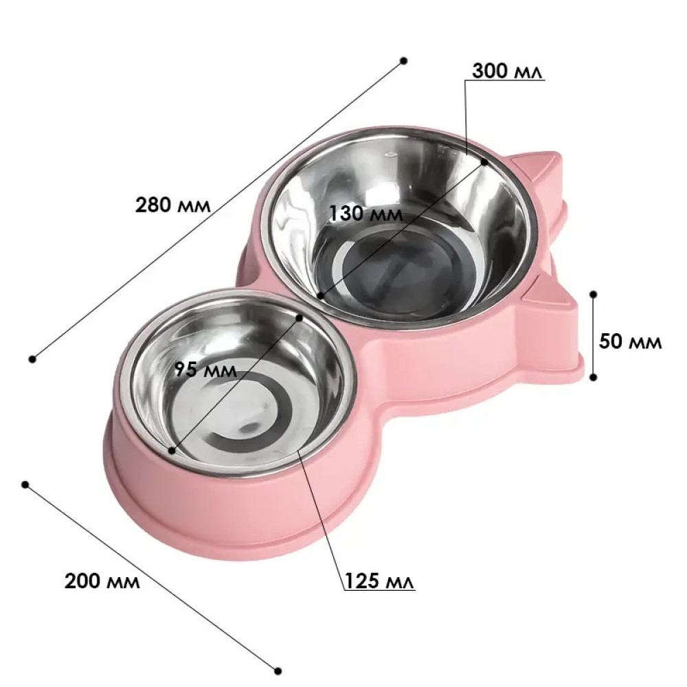 Миска для кошек двойная с подставкой для средних пород из пластика и металла 300 мл Taotaopets 132215 Pink