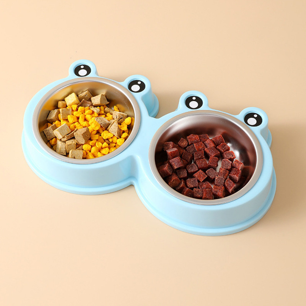 Двойная миска Taotaopets Frog 135501 поможет успешно решить эту задачу. Корпус из безопасного пластика не впитывает посторонние запахи и вкусы. Съемные тарелочки из нержавеющей стали легко извлекаются и моются. На нижней части подставки расположены небольшие резиновые ножки. Благодаря им, миска не скользит на полу, когда питомец принимает пищу.