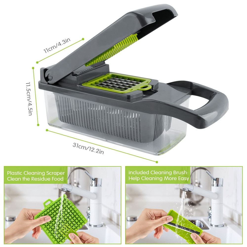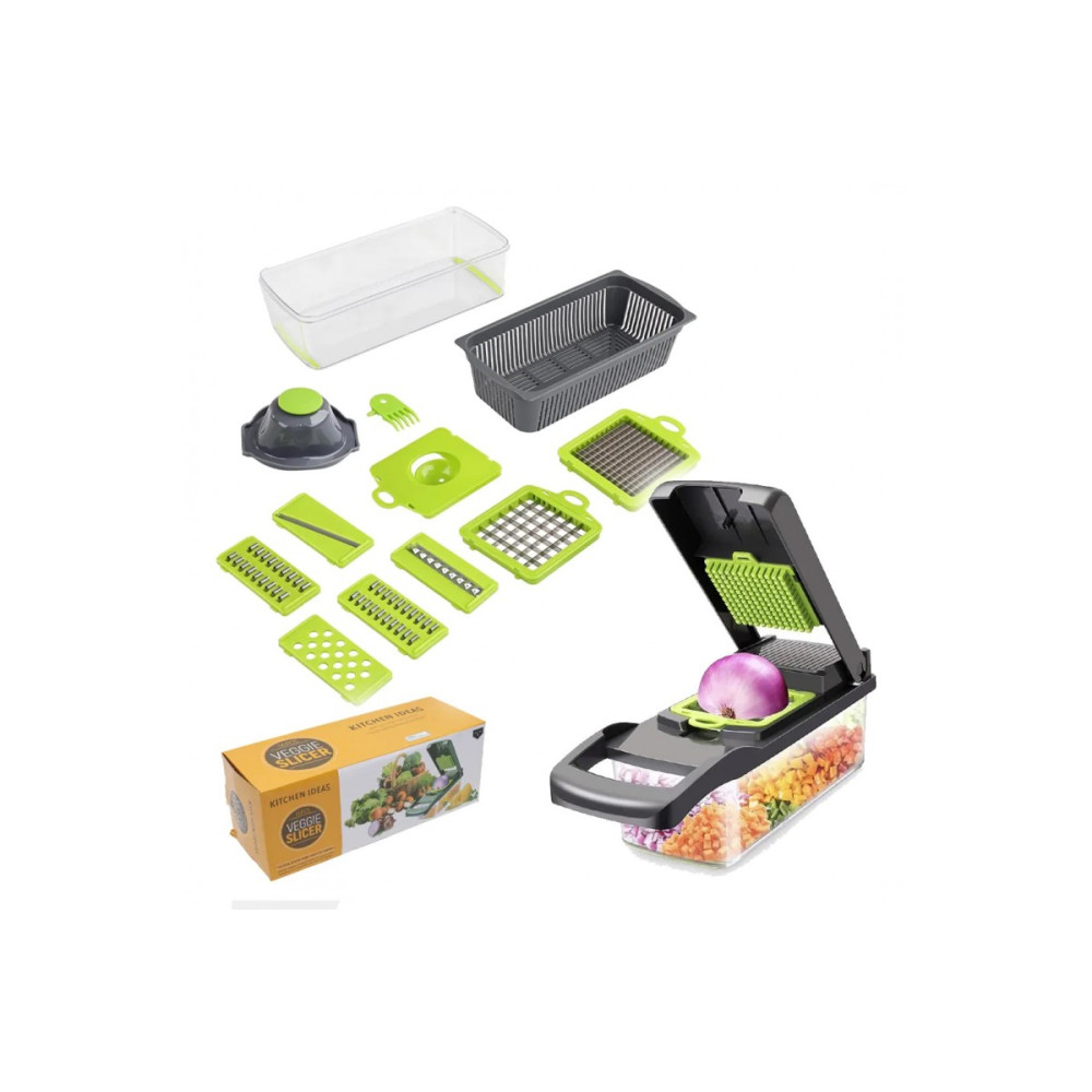 Многофункциональная овощерезка — это универсальный кухонный инструмент, который поможет быстро и легко нарезать, шинковать, тереть или измельчать продукты. Благодаря разнообразным насадкам вы сможете приготовить ингредиенты для салатов, гарниров, закусок и заготовок без лишних усилий. Овощерезка оснащена вместительным контейнером объёмом 1000 мл, который можно использовать как для хранения нарезанных продуктов, так и для промывания овощей с помощью дренажной корзины. Эргономичная крышка с удобной ручкой делает процесс нарезки ещё комфортнее, а держатель для овощей защитит ваши руки от порезов. Острые лезвия из нержавеющей стали обеспечивают точный и ровный рез, а ударопрочный ABS-пластик гарантирует долговечность прибора. В комплект также входят полезные аксессуары, такие как измельчитель чеснока, сепаратор для яиц и кисть для очистки. Овощерезка станет отличным помощником для приготовления блюд дома, на даче или перед праздниками.