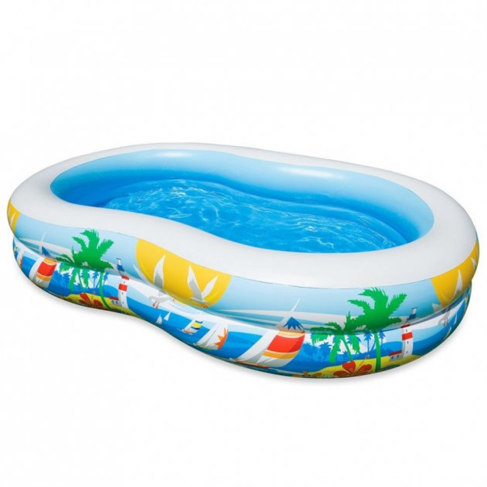 Детский бассейн "Райская Лагуна" имеет необычную, волнообразную форму. Борт бассейна сделан из 2 независимых воздушных камер с яркими изображениями морского побережья на стенках. Широкие его борта позволят взрослым присесть, а детям играть на них.