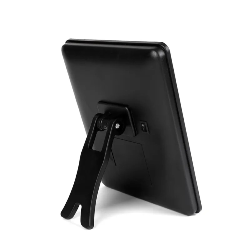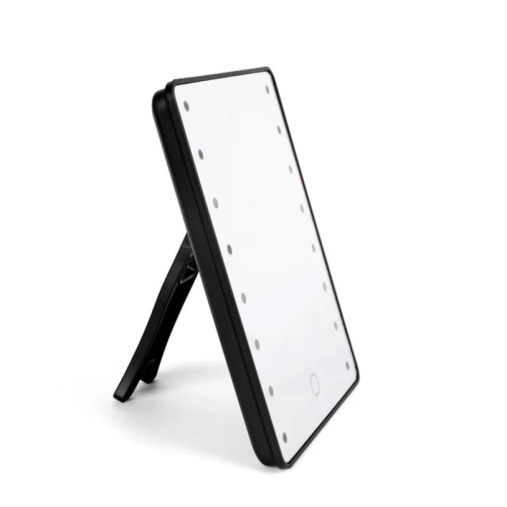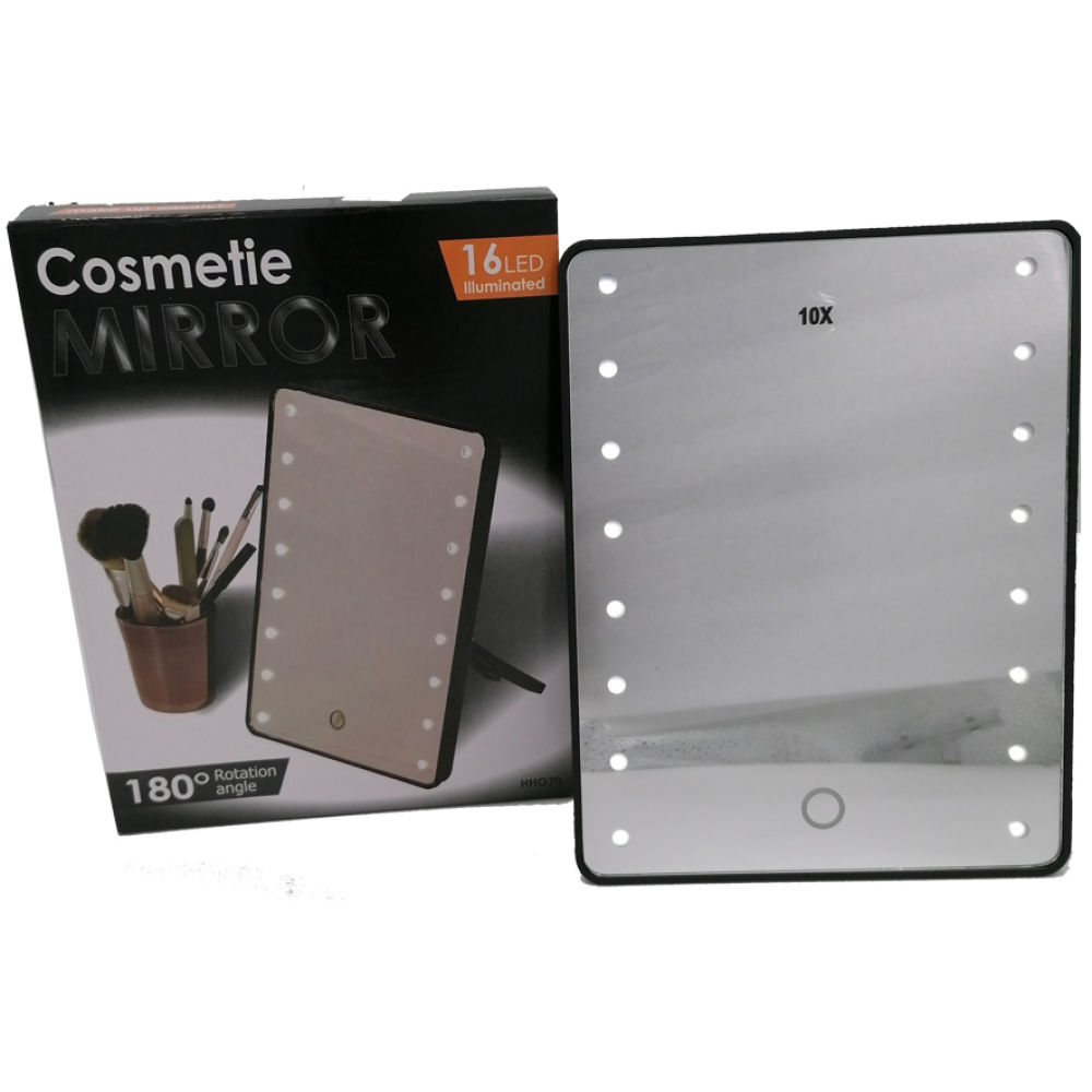 Включить и выключить зеркало можно при помощи специальной сенсорной кнопки. Освещение работает по счет обычных батареек. Специальная подставка дозволит разместить на ней различные косметические мелочи, например, губную помаду, пудру, тени для глаз или что-нибудь другое, а свободное вращение на 180 ° позволяет зафиксировать косметическое зеркало в удобном для вас положении. Зеркало для макияжа с LED подсветкой имеет изысканный, элегантный вид и украсит собой интерьер в доме. Аксессуар, а именно зеркало обладает размером 22*16 см, благодаря чему он одинаково удобен для применения в любом помещении — от студии до будуара или ванной комнаты. Вы с легкостью сможете зафиксировать зеркало в различных положениях, а также вращать его на 360 градусов, что делает его максимально практичным. Подставка представляет собой дополнительное место для хранения бижутерии. На зеркале расположена удобная сенсорная кнопка для включения.