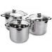 Высококачественный набор посуды из нержавеющей стали с трех слойным термоаккумулирующим дном, обеспечивает быстрый и равномерный нагрев по всему основанию, а также сохранение тепла в течении длительного времени. Совместим со всеми видами плит, включая индукционные. Термостойкие не нагревающиеся клепаные ручки. Крышки выполнены из жаропрочного стекла с отверстием для выхода пара. Кастрюли легко моются и чистятся. Подходят для мытья в посудомоечной машине и хранения в холодильнике. Привлекательный и практичный дизайн впишется в интерьер любой кухни.