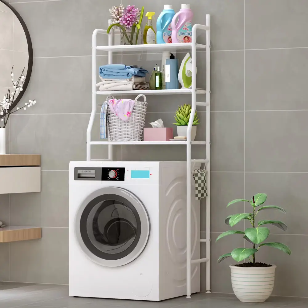 Интересное и практичное решение по организации пространства. Стойка органайзер на стиральную машину дает возможность задействовать свободное место над техникой. Особенно актуальна для небольшой ванной комнаты или кухни. Изящная конструкция совершенно не загромождает пространство, в отличие от настенного шкафа. При этом стойка достаточно вместительная. Вы сможете удобно расположить чистящие средства, хозяйственные аксессуары, косметику и банные принадлежности. Ваша стиральная машинка больше не будет заставлена бытовой химией, а стиральный порошок не упадет на пол во время отжима. Стеллаж изготовлен из нержавеющей стали с порошковым покрытием. Прочный и устойчивый. Легко собрать и установить.