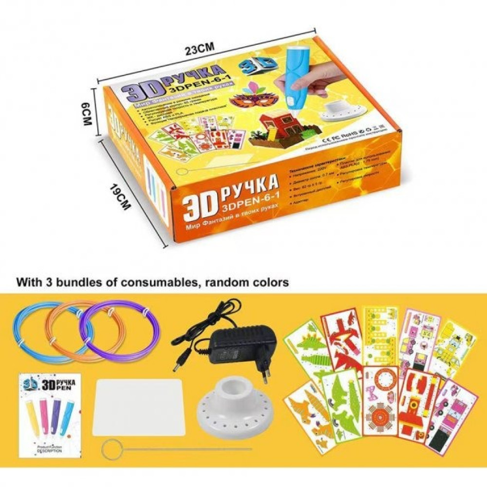 3D ручка 3DPEN-6-1 – це новий напрямок у творчому розвитку дітей. Це технічний пристрій для створення 3D-зображень. Зовні прилад схожий на звичайну ручку. Але замість чорнила заправляється кольоровим пластиком. За високої температури пластиковий стрижень перетворюється на рідку субстанцію для малювання. Інженери внесли низку покращень у найпопулярнішу на планеті 3D ручку. Робота механіки стала плавнішою. Швидкість подачі пластику, як і раніше, залишилася на висоті.