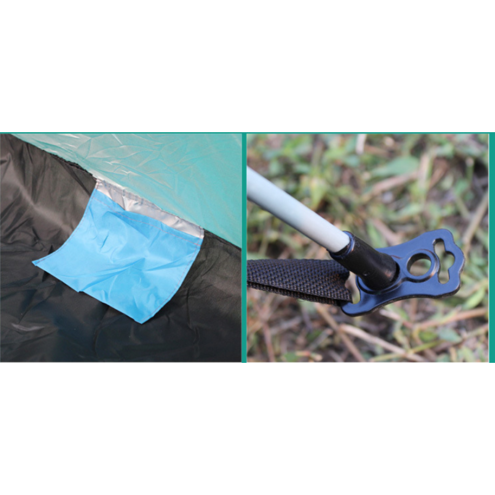 Поліестеровий тент і поліетиленове дно збережуть сухість усередині, антимоскітна сітка не впустить до намету комах. Козирок захистить від сонця та дощу на вході в намет. Стійки зі скловолокна не будуть деформуватися при тривалому використанні, так що цей намет прослужить багато років.