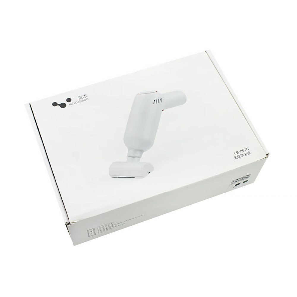 - USB-зарядка — акумуляторний пилосос Helloleiboo оснащений кабелем живлення USB довжиною 88 см, що робить його зручним зарядку як в машині, так і вдома. Місткість акумуляторної батареї становить 2000 мА*год. Одна повна зарядка може підтримувати до 20 хвилин використання.