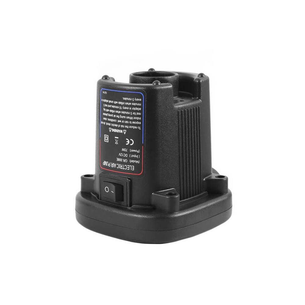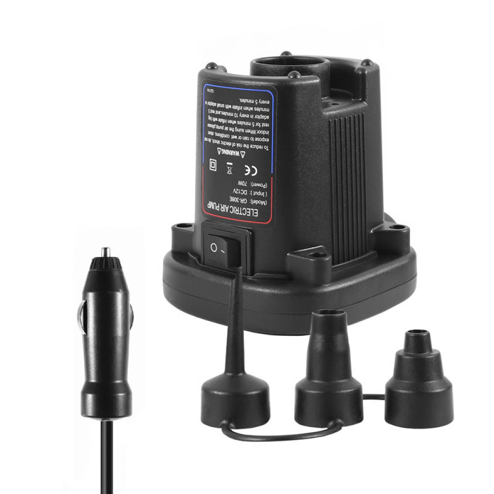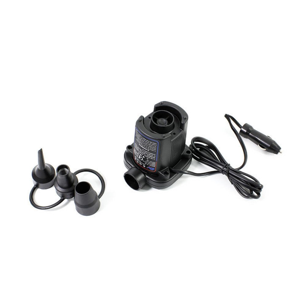 - Має три насадки, що дозволяє підключити пристрій практично до будь-якого матрасу або лодці.