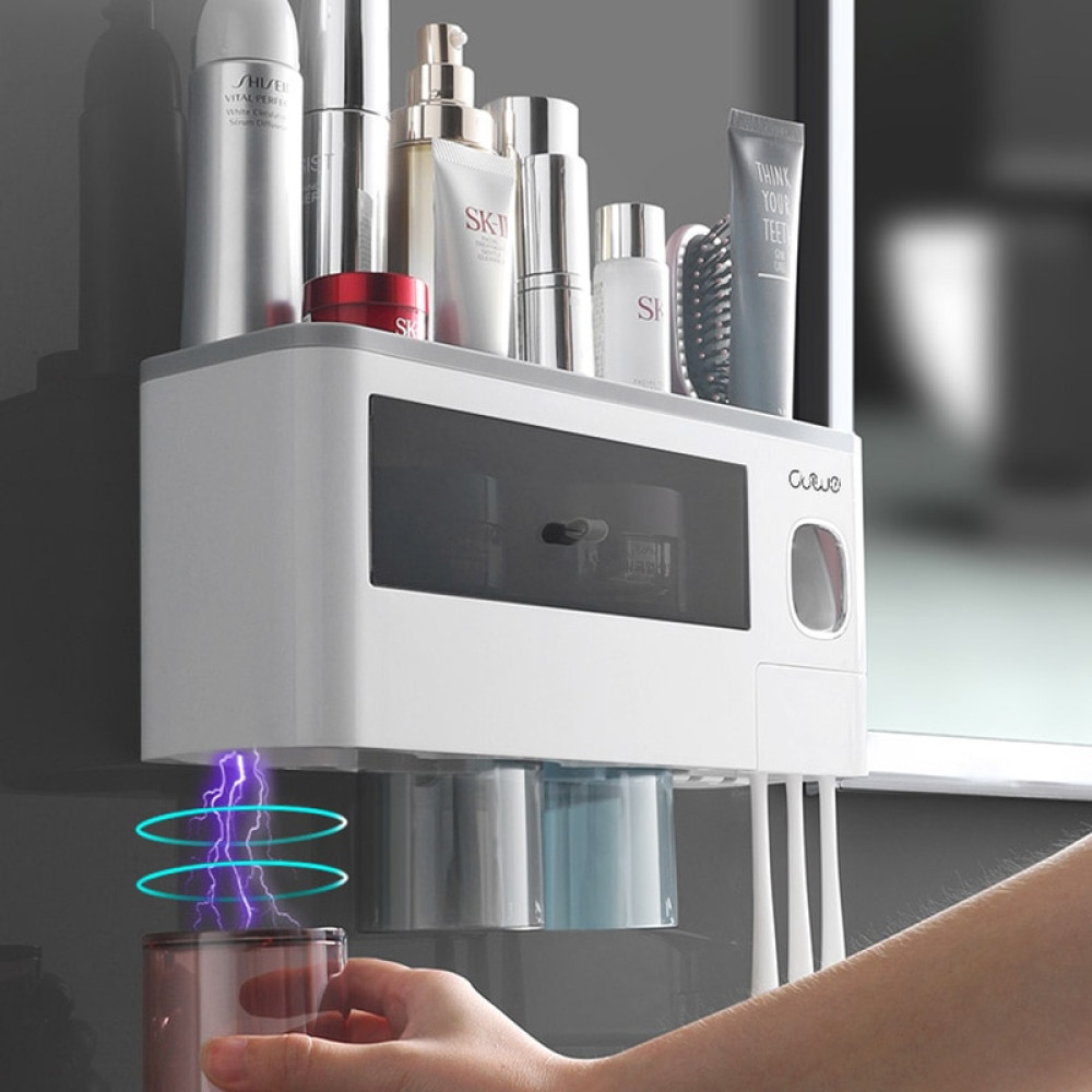 Диспенсер-полиця для зубного приладдя A1908 - це стильне та функціональне рішення для зберігання та організації зубних щіток, пасти та інших аксесуарів у вашій ванній кімнаті.
