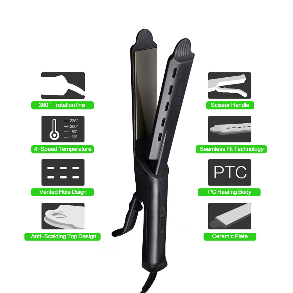 Завдяки гладкій поверхні з керамічним покриттям праска швидко нагрівається, дбайливо впливає на волосся й рівномірно розподіляє тепло, зберігаючи їхнє здоров'я та красу. Пластини щільно прилягають до волосся і чудово випрямляють його. Керамічне покриття дає змогу менше травмувати волосся, оберігає його від пересихання. Ергономічний дизайн гарантує максимально комфортне використання приладу.