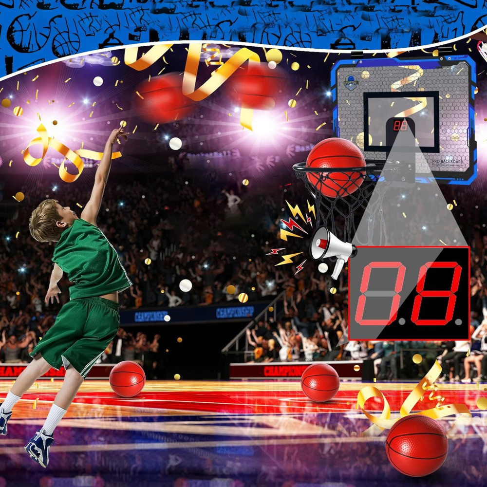 Дитячий баскетбольний набір з електронним табло - це ідеальний аксесуар для активних ігор і перших спортивних досягнень! Комплект містить усе необхідне для захопливої гри: міцний пластиковий щит, металеве кільце із сіткою, м'яч і насос. Електронне табло зі звуковими ефектами робить процес гри динамічним і захопливим, фіксуючи кожне влучання в кільце. Просте встановлення на стіну завдяки комплекту кріплень дає змогу розмістити щит у будь-якому зручному місці. Кутові накладки забезпечують додаткову безпеку. Набір допомагає дитині розвивати спортивні навички, фізичну форму і командний дух, при цьому приносить море задоволення.