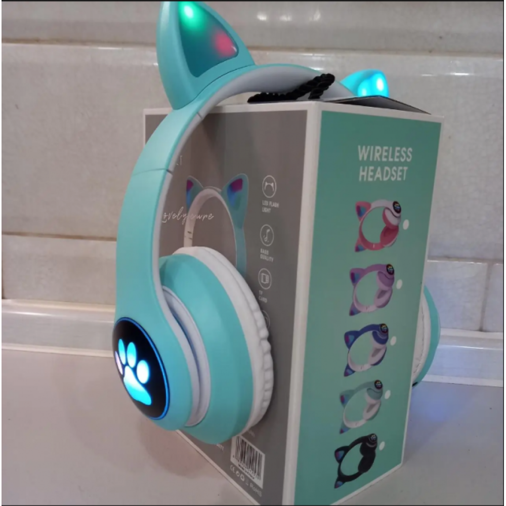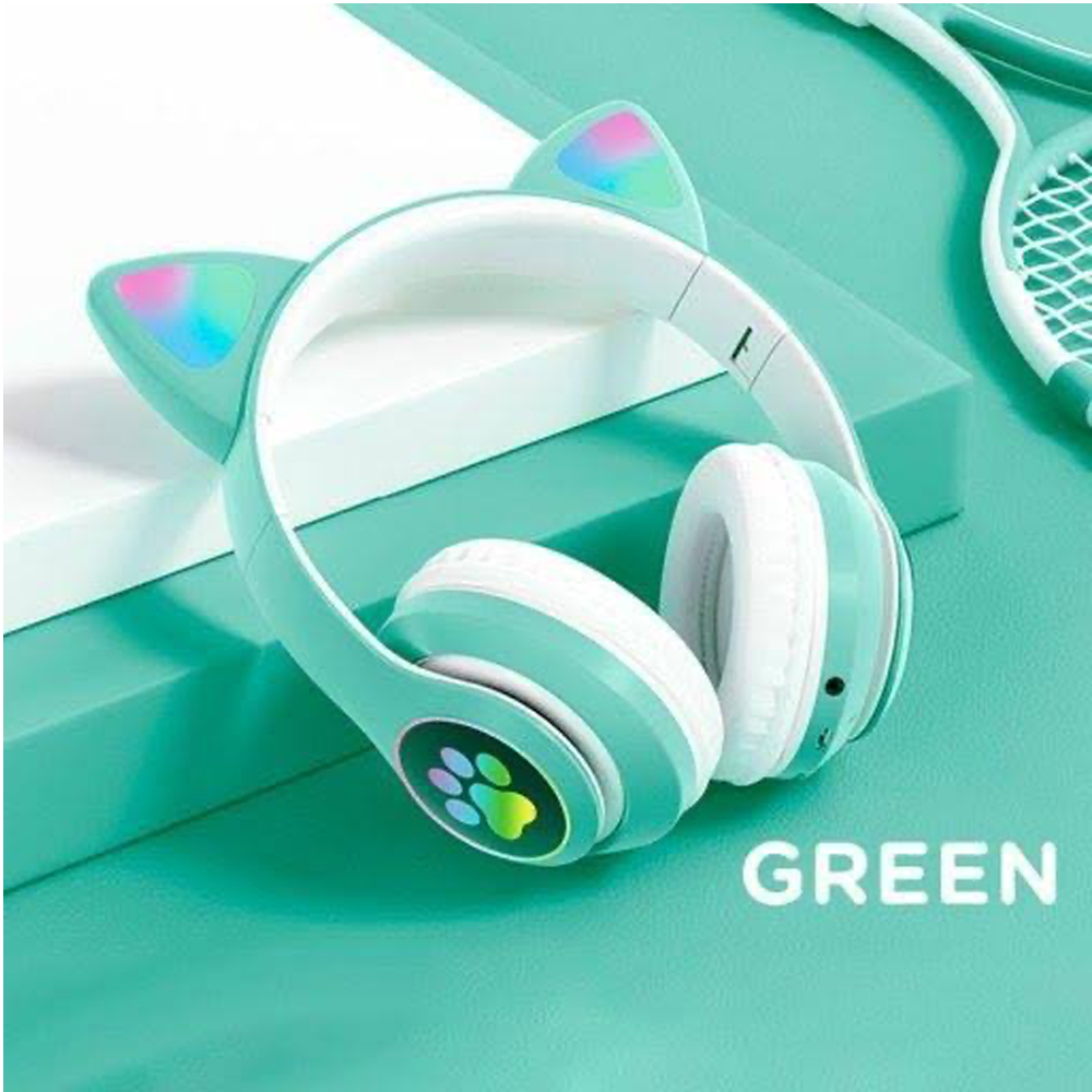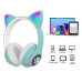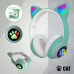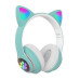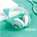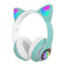 Бездротові накладні навушники котячі вушка з мікрофоном та LED RGB підсвічуванням, зелені AKS-28