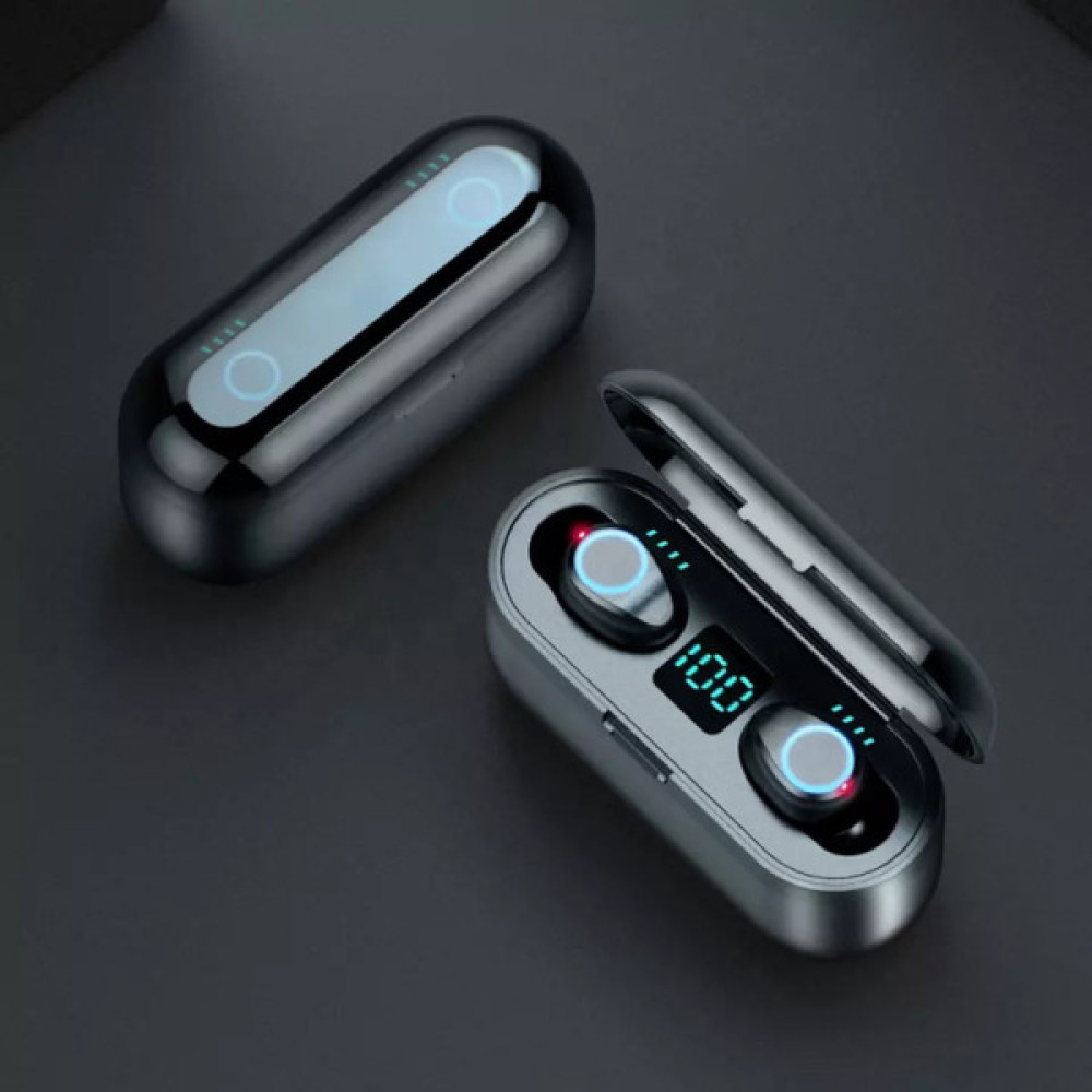 Бездротові навушники TWSF9 – це зручні, стильні бездротові навушники. Попри бюджетну вартість, технічні характеристики цієї моделі F9 мають досить високі. Автоматична синхронізація із телефоном. Зручний чохол із міцного пластику служить зарядним пристроєм для навушників, підставкою для телефону, powerbank для підзарядки інших гаджетів. Навушники заряджаються в автоматичному режимі відразу після того, як опиняться усередині кейсу. Однієї зарядки вистачає на 2 години безперервного прослуховування музичних файлів або телефонних розмов. Для повної зарядки навушників потрібно не понад годину. Кейс є автономним, його повне заряджання здійснюється протягом години. Робота навушників можлива з будь-яким смартфоном, планшетом, ноутбуком, які мають бездротову систему Bluetooth. Для комфортного розміщення у вухах є додаткові накладки, виготовлені з тонкого, м'якого поролону.