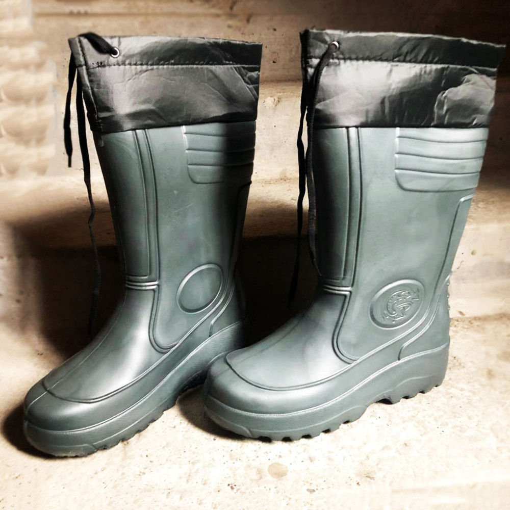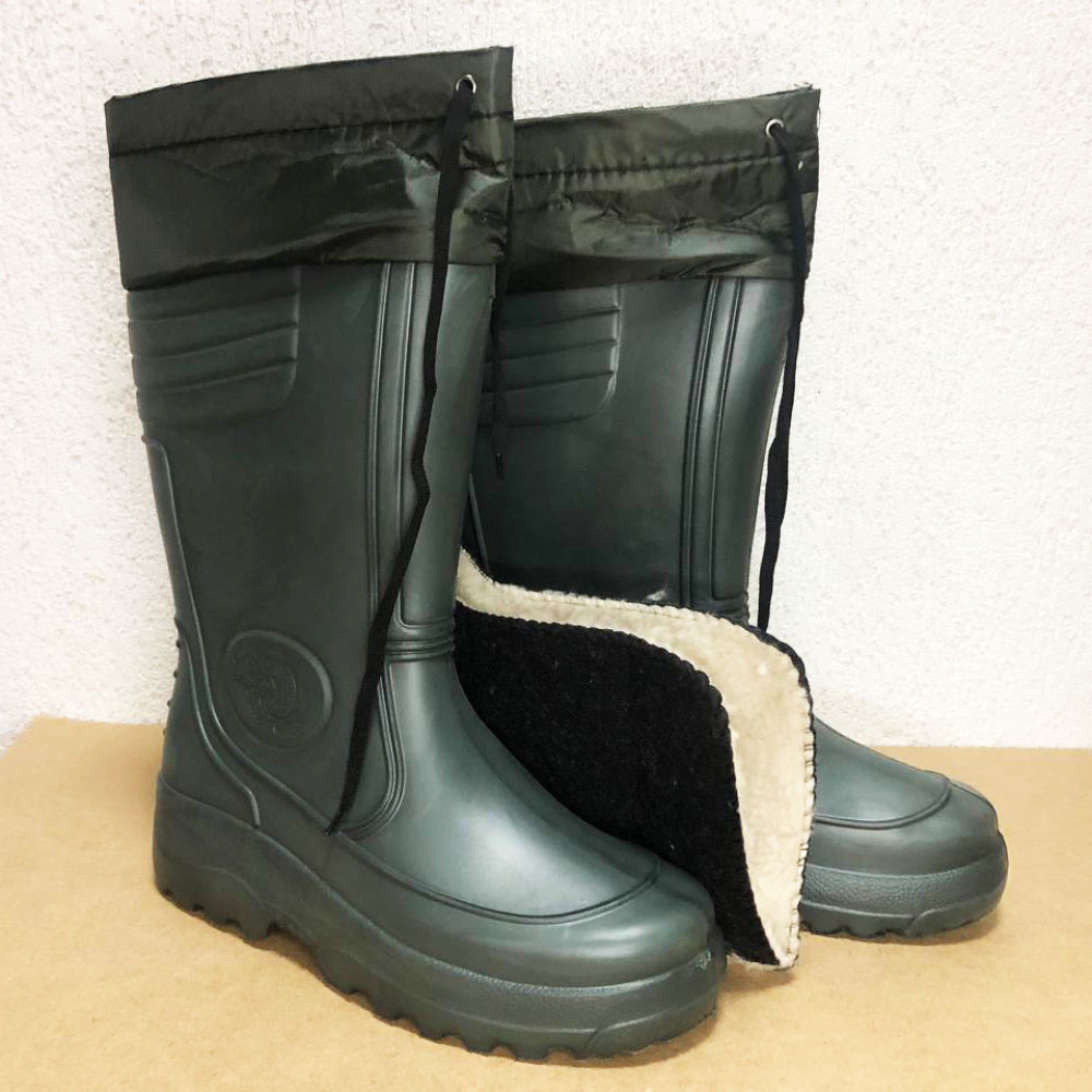 - Чоботи гумові високі утеплені з підв'язкою зверху розмір 44 Зелений