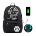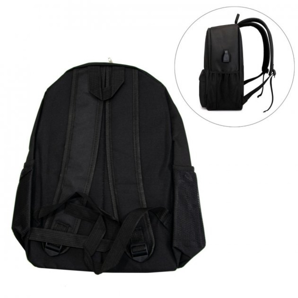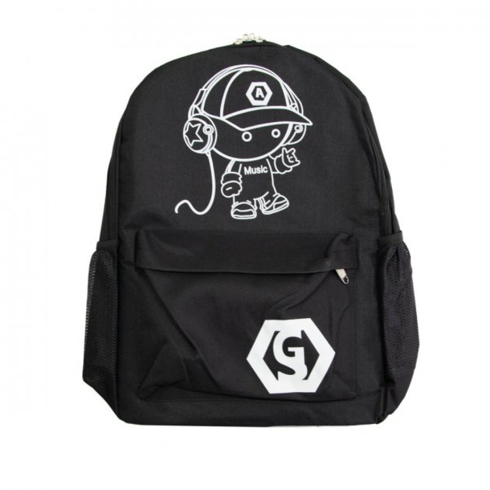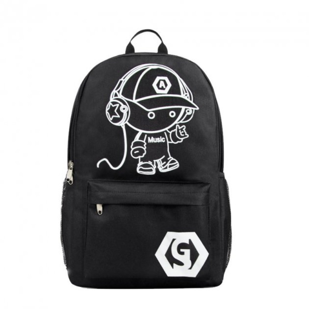 Стильна та практична річ для дітей та підлітків з унікальним дизайном та з USB. Зручний та стильний рюкзак порадує вас своєю якістю та функціональністю. Щоб рюкзак світився у темряві, потрібно його потримати на яскравому світлі зовсім недовго (5-10 хвилин) і він світитиметься у темряві. Флуоресцентні принти нанесені на рюкзак нешкідливі та безпечні для Вашого здоров'я. Цього дня цей рюкзак чорного кольору з білим малюнком, але вимкніть світло – воно почне виділяти флуоресцентне світло.
