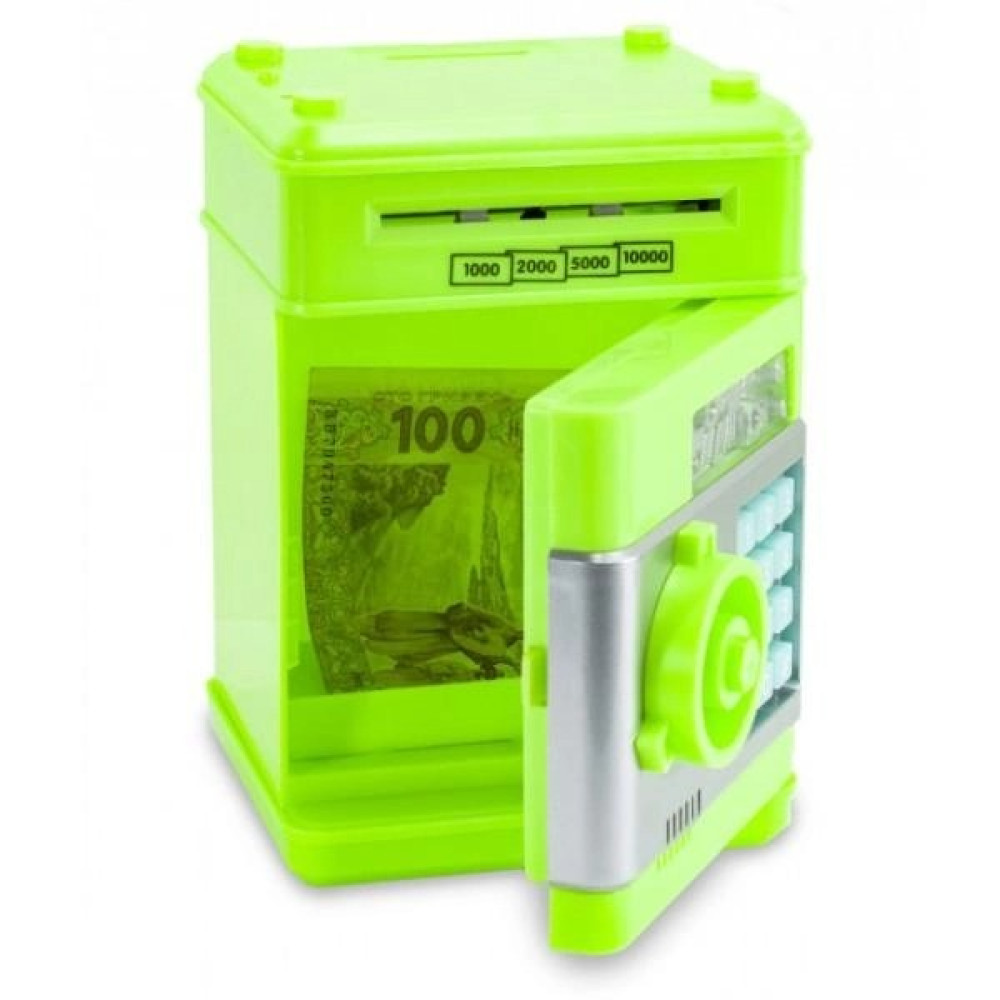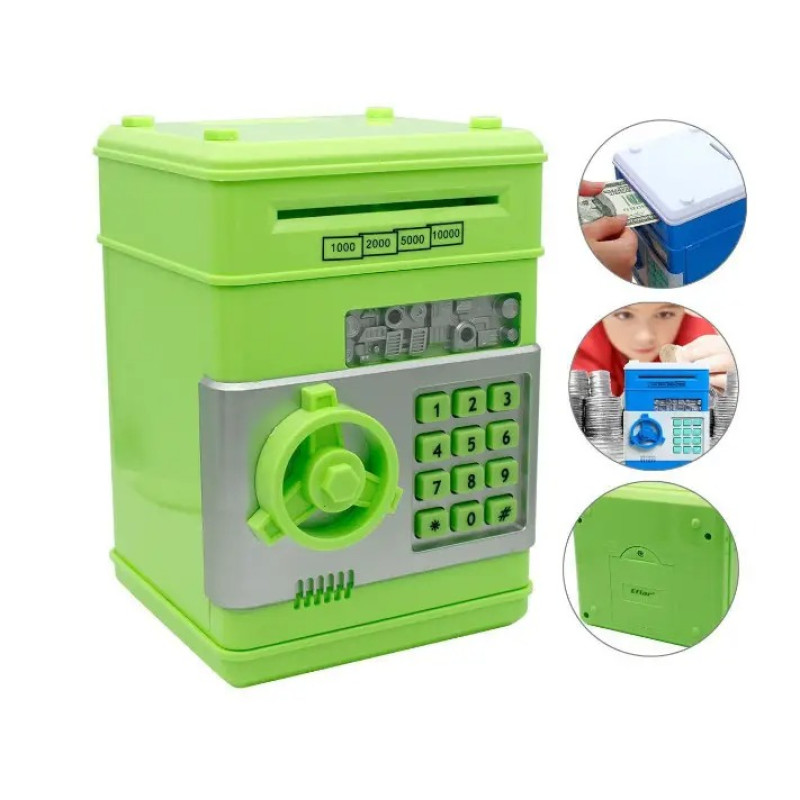 «Електронний сейф» оснащений справжнісінькою системою безпеки: незачинені дверцята пищить, нагадуючи про себе. Якщо ви або дитина, якій подарували таку скарбничку, забули код, а купюри дістати необхідно, можете скористатися простим прийомом злому. Для цього достатньо вийняти батареї - це відновить заводський код "0000". Тому сміливо даруйте скарбничку-сейф і дорослим, і дітям, яких хочете привчити до ощадливості