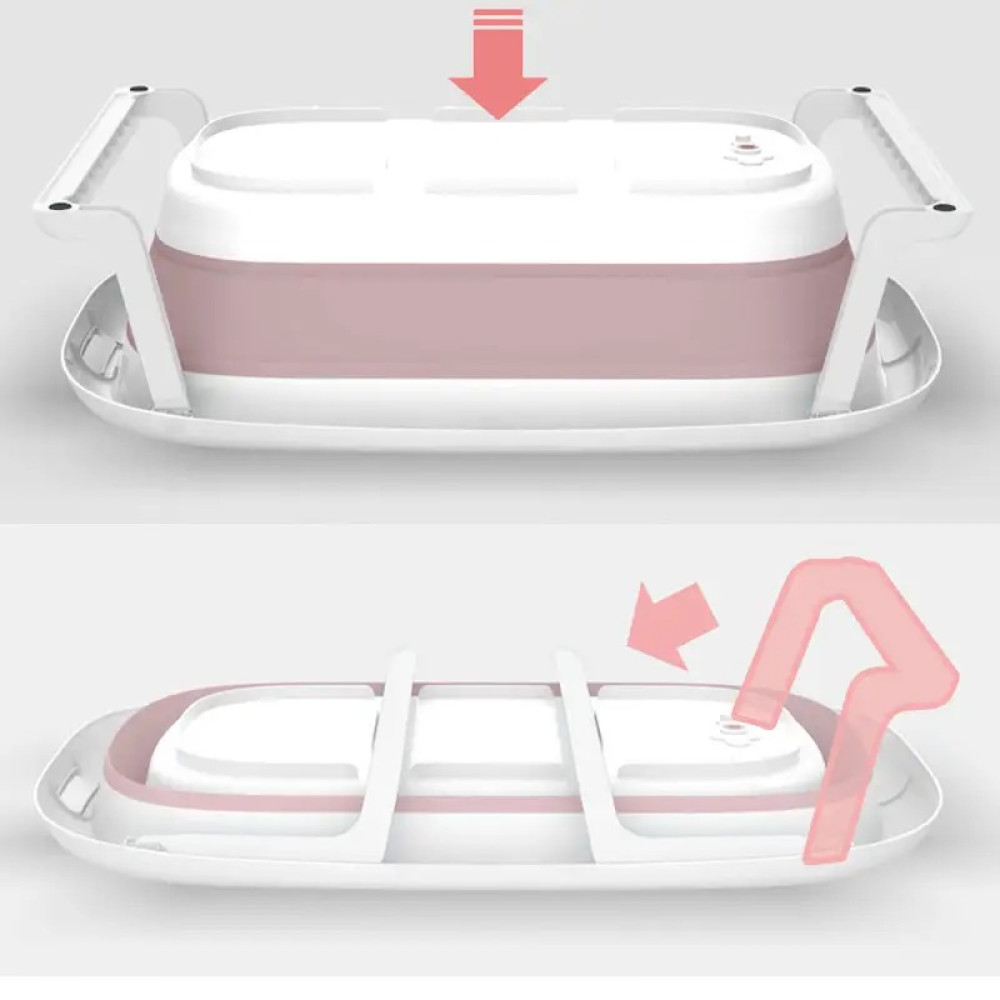 Ванночка з функцією складання ідеально підходить для молодих батьків. Вона стане в нагоді не тільки вдома, а й у сімейних поїздках. Функція складання дає змогу економити місце, особливо якщо ванна кімната має обмежений простір. Ви можете легко помістити її в багажник автомобіля або навіть у велику валізу, що робить її ідеальною для використання, наприклад, у відпустці.