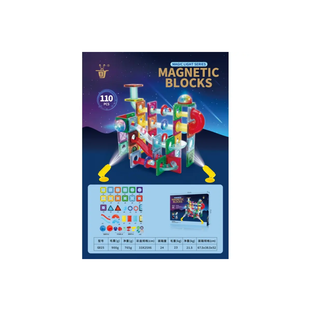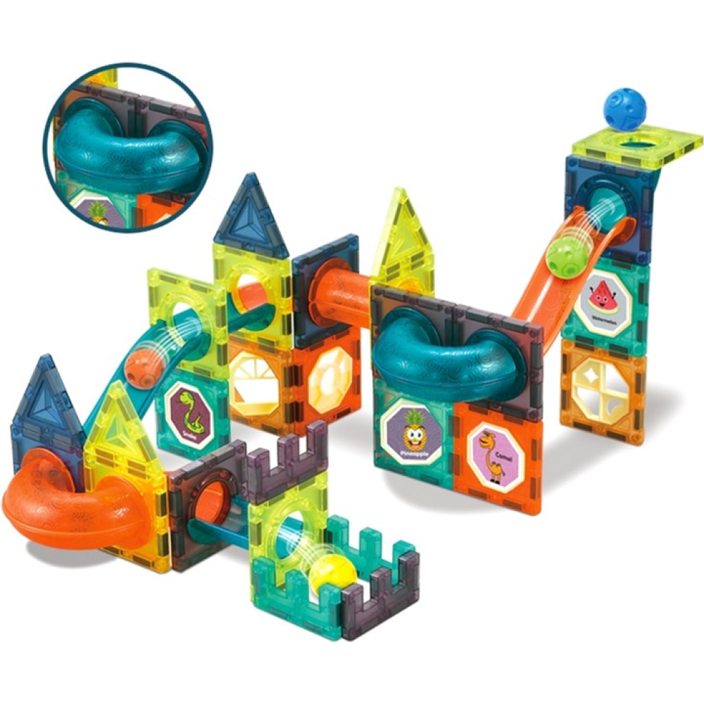 Магнітні кубики привернуть увагу та захоплять вашу дитину. Блоки дуже легко з'єднуються один з одним і з них можна створити відмінні конструкції з гірками, наприклад доріжку, по якій рухається м'яч. Доріжку можна підсвітити ліхтариком, який входить у комплект, щоб зробити її ще ефектнішою, а дитина сама потім може спостерігати за рухом світла, який розвиватиме його сприйняття.