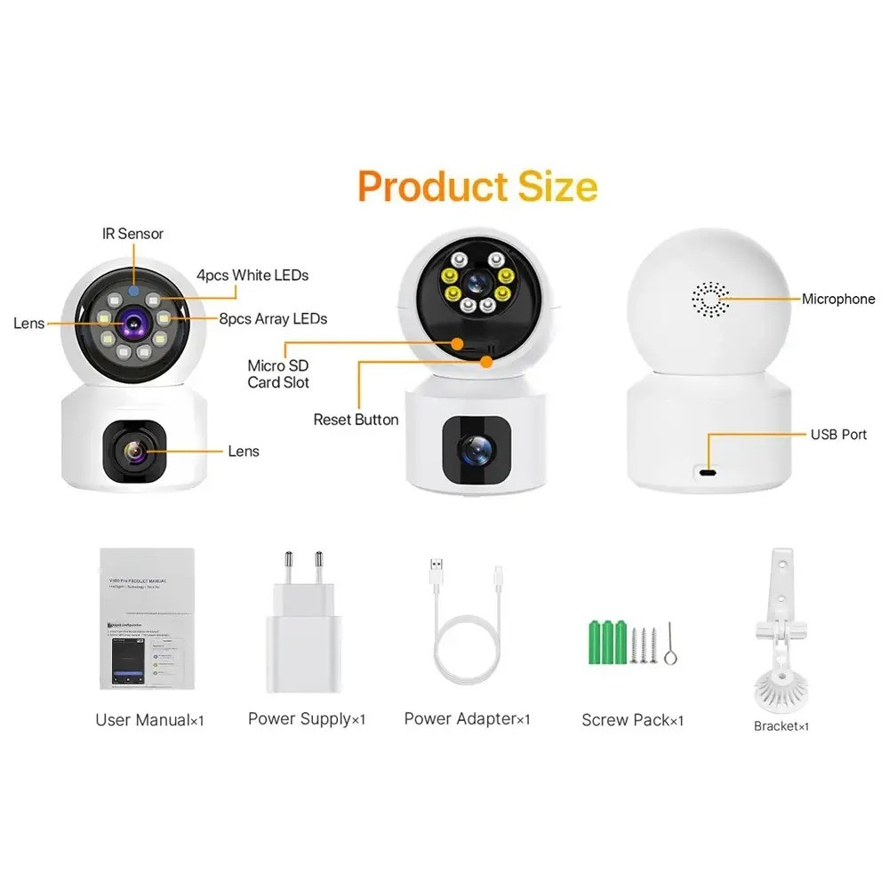 Будьте в курсі того, що відбувається, з розумною поворотною внутрішньою WiFi камерою відеоспостереження ICSEE! Знімайте відео з роздільною здатністю 4 Мп та отримуйте кришталево чіткі зображення, а також повертайте камеру на 360 градусів для повного огляду кімнати. Слідкуйте за домашніми тваринами, маленькими дітьми та старшими родичами за допомогою мобільного додатку ICSEE та отримуйте сповіщення про рух у режимі реального часу.