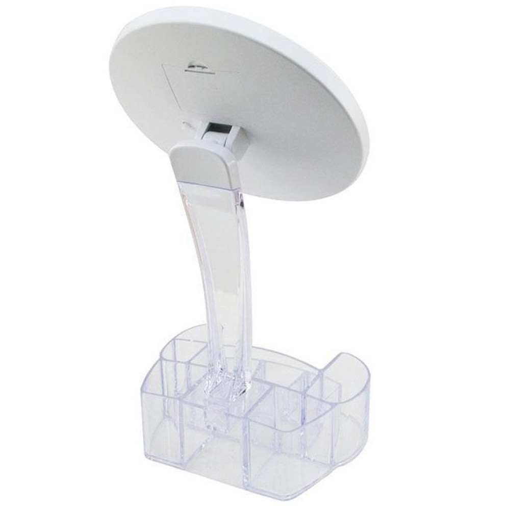 Спеціальна підставка дозволить розмістити на ній різні косметичні дрібниці, наприклад, губну помаду, пудру, тіні для очей або щось інше, а вільне обертання на 90 ° дозволяє зафіксувати косметичне дзеркало у зручному для вас положенні.