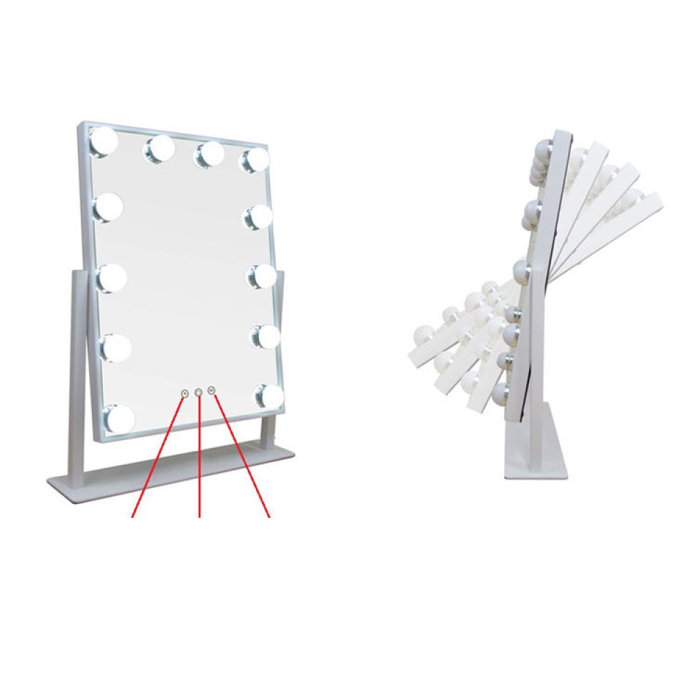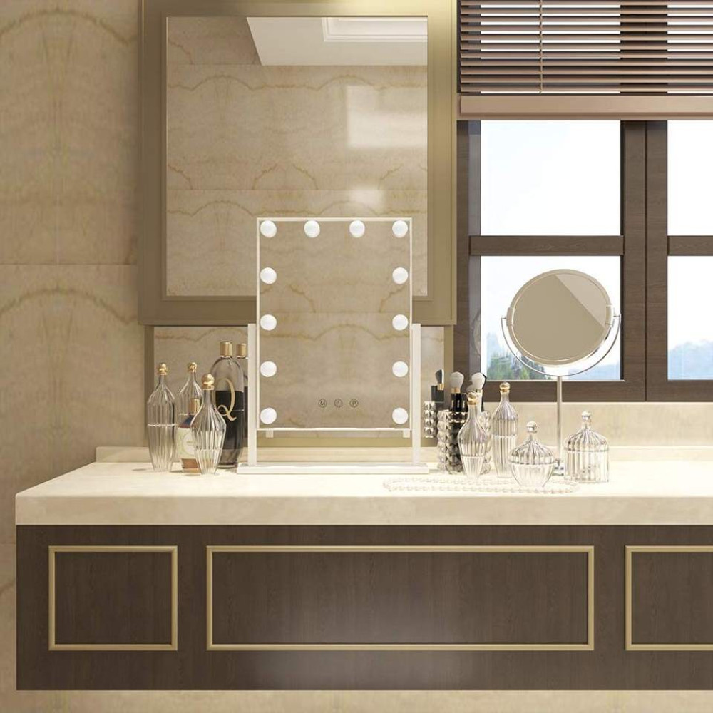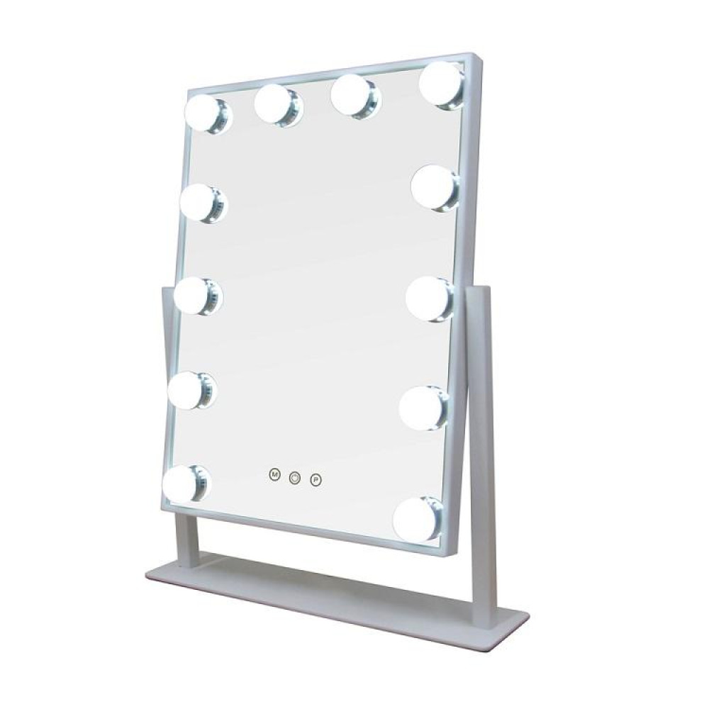 Додаткові опції дзеркала включають підсвічування, яке дозволяє висвітлити обличчя для більш точного нанесення макіяжу, а також підставку та сенсорне керування, що робить його ще зручнішим у використанні.
