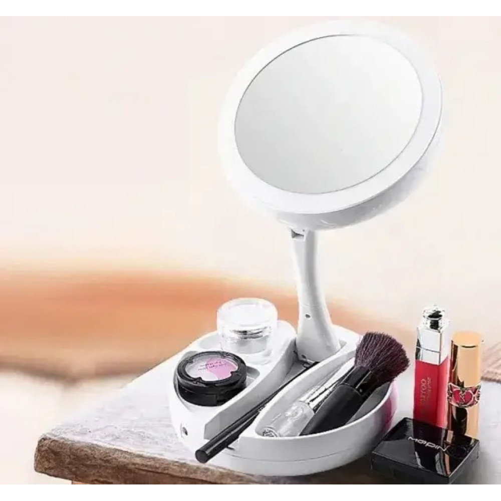 Дзеркало має три відсіки для дрібних предметів, таких як шпильки, гумки, ватяні диски та палички, спонж. Позаду знаходиться кнопка включення, а з двох сторін дзеркала розташовані LED-лампи по колу. Дане світло досить яскраве для створення макіяжу та косметичних процедур, а також може бути використане як нічник, світильник або лампа для підсвічування клавіатури.