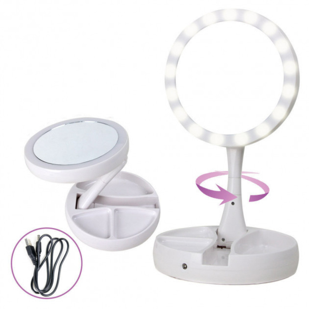 Дзеркало з LED підсвічуванням кругле - Настільне дзеркало з підсвічуванням та збільшенням для макіяжу призначене для жінок, які постійно дбають про свою зовнішність, та надає їм неоціненну допомогу у догляді за шкірою обличчя та нанесенні макіяжу. У дзеркалі по контуру є зручне та яскраве LED-підсвічування, яке дозволяє особливо зручно користуватися дзеркалом. Воно ідеально підходить не тільки для нанесення макіяжу, виконання будь-яких косметологічних процедур, а й одягання контактних лінз, а також буде корисним чоловікам під час щоденного гоління.