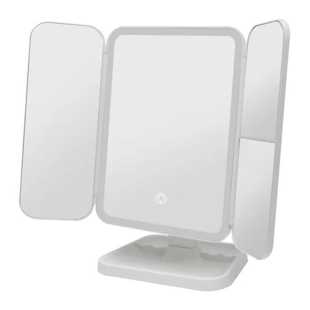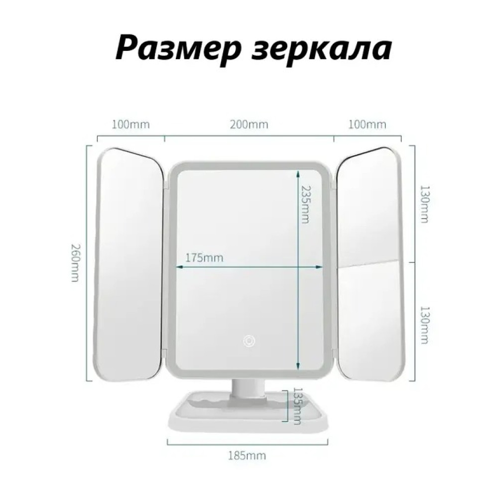 Настільне косметичне складне дзеркало з LED-підсвічуванням та сенсорним датчиком включення та збільшувальними секціями. Незамінна річ для будь-якої дівчини.
