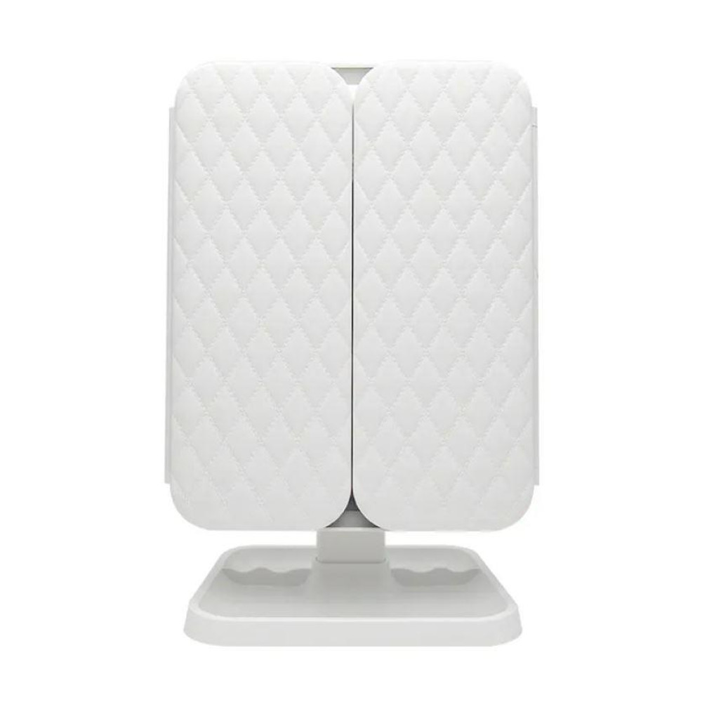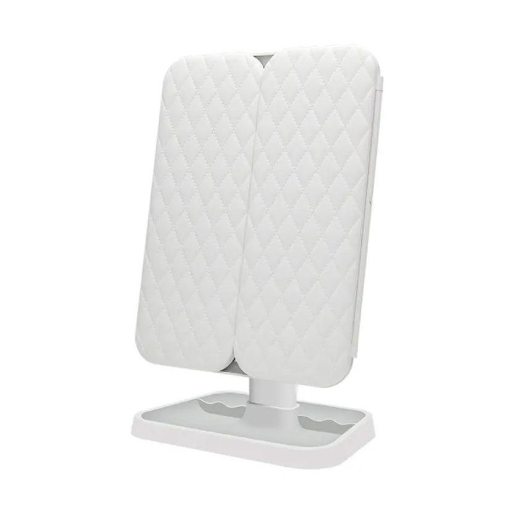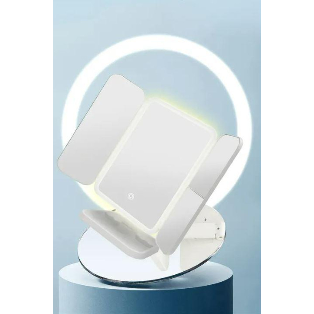 52 світлодіоди забезпечують рівномірне освітлення обличчя з усіх боків у будь-який час доби, що дозволить вам рівномірно нанести косметику, не допускаючи помилок. Увімкнути та вимкнути дзеркало можна за допомогою спеціальної сенсорної кнопки. Висвітлення працює за рахунок вбудованого акумулятора або USB-підключення. Завдяки своїй автономності, дзеркало стане ідеальним помічником не тільки вдома, але й поза ним, на дачі, на природі. Дзеркало легко складається вдвічі і приховує всі свої дзеркальні поверхні ударостійким пластиком, що дає можливість брати його з собою просто поклавши в сумку рюкзак, не боячись за його збереження.