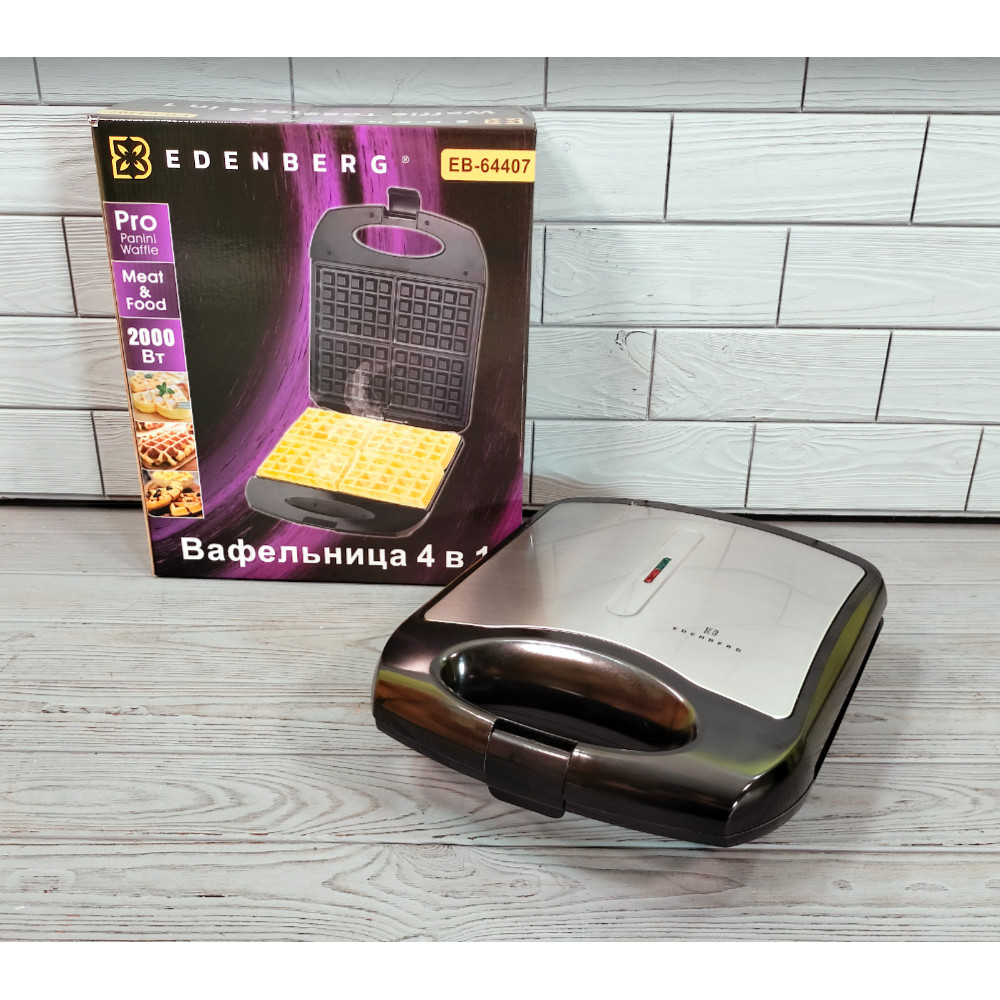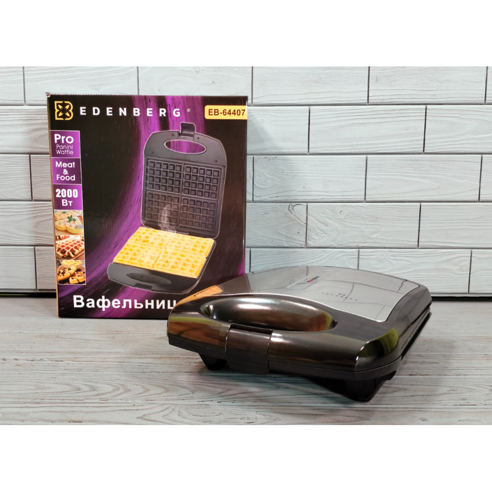 - Вафельниця Edenberg EB-64407 оснащена антипригарним покриттям, тому приготовлені хрусткі вафлі не підгоряють і не прилипають.