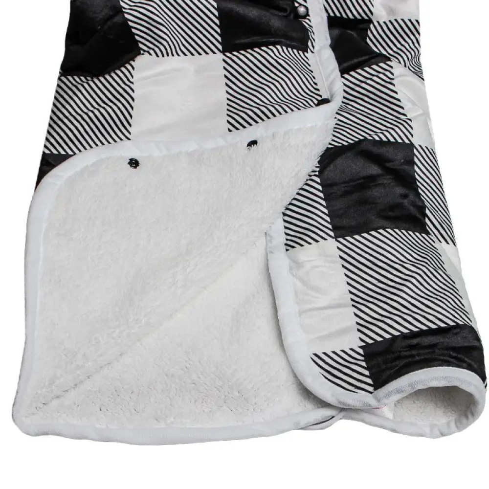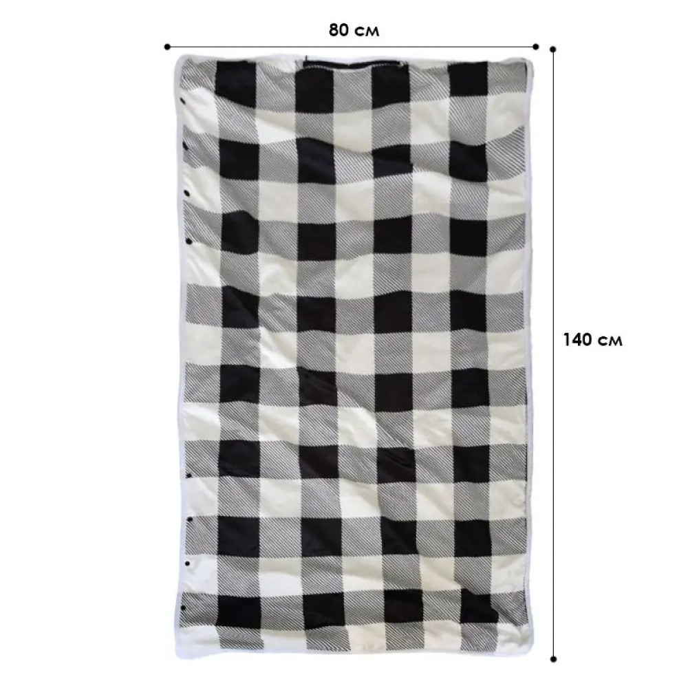 - Виріб можна використовувати як накидки на плечі чи пледа. Завдяки чотирьом ґудзикам електроплед надійно фіксується на тілі і не спадає під час рухів. Одягнувши його, можна вільно ходити та займатися своїми справами.