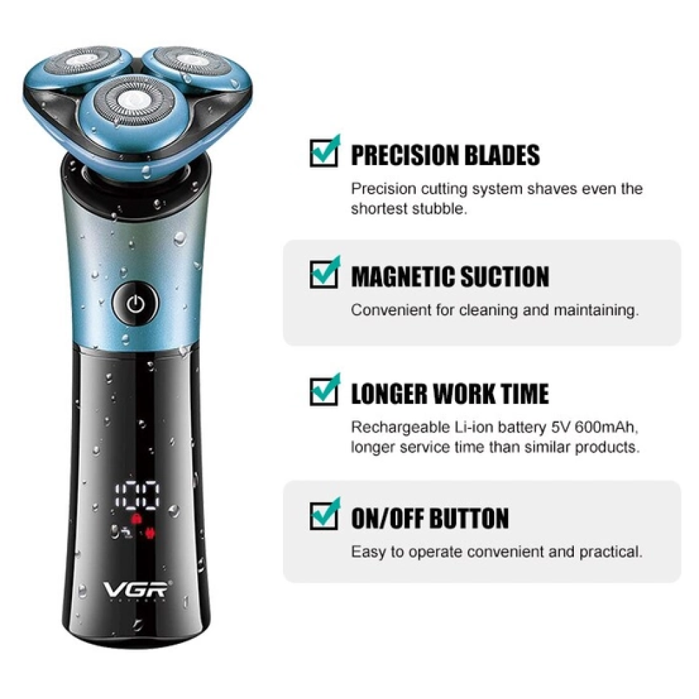 Електробритва на акумуляторі VGR V-326 створена спеціально для чоловіків, які хочуть завжди добре виглядати. Бритва має 3 плаваючі голячі голівки, які максимально щільно стикаються зі шкірою обличчя і здійснюють комфортне і легке гоління.