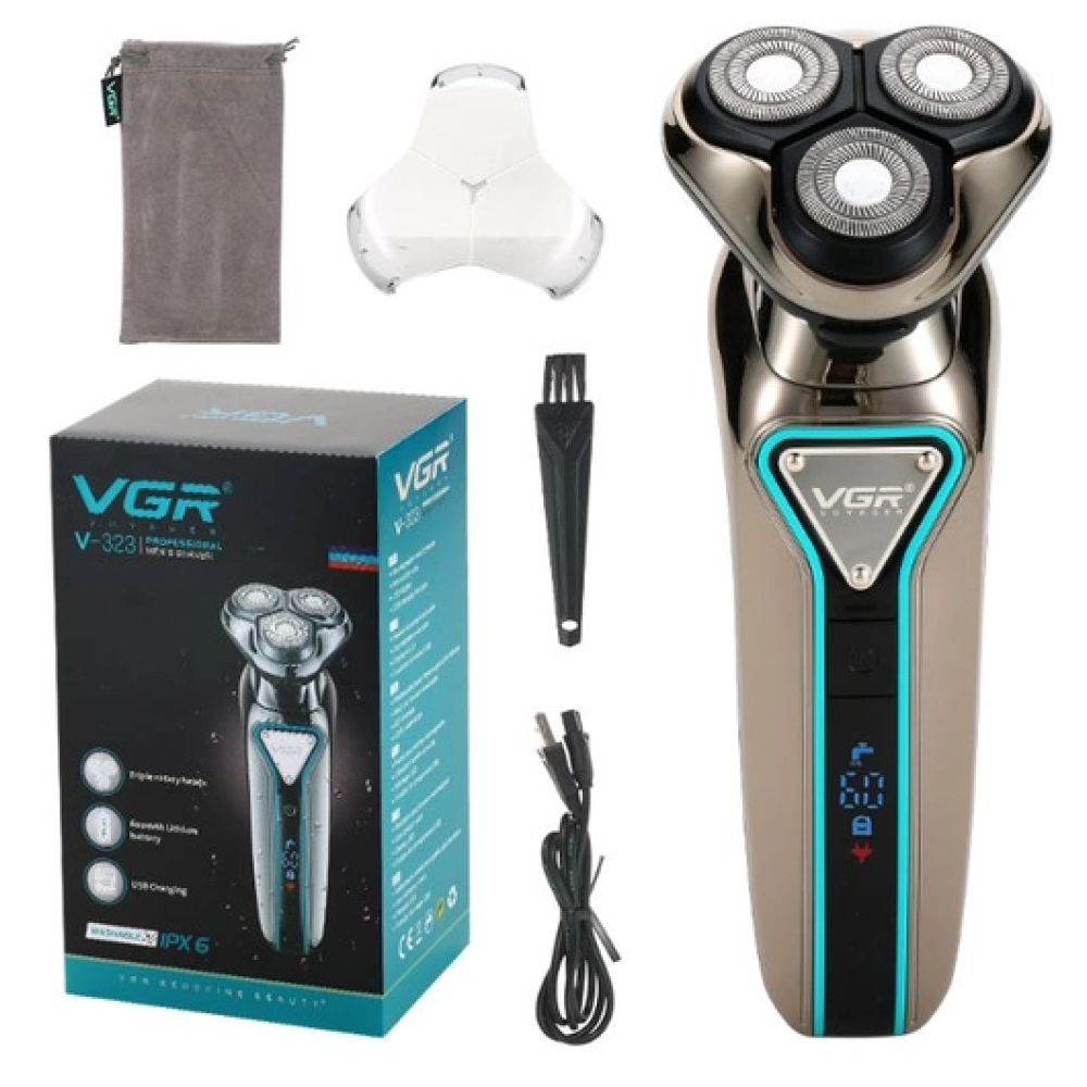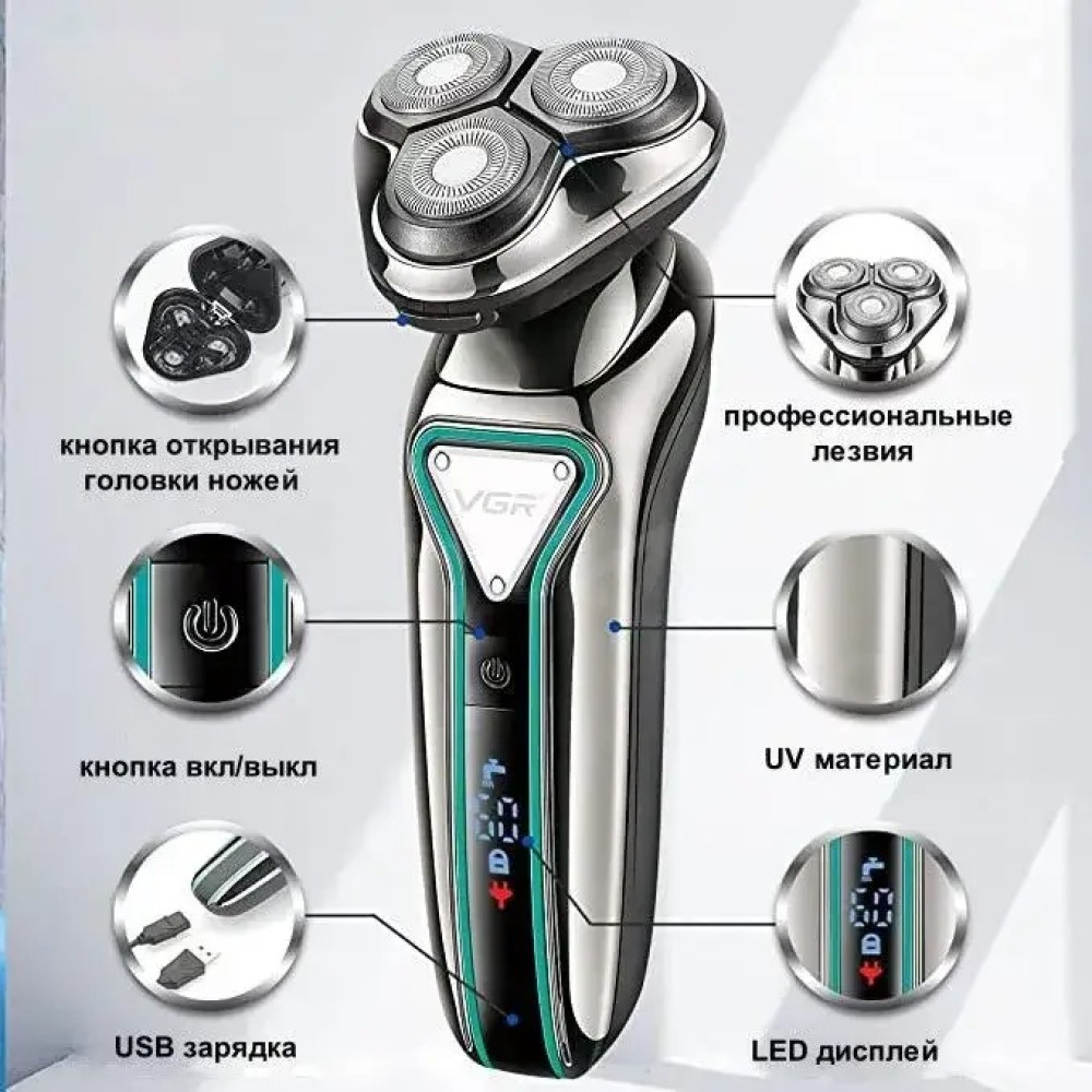 Електробритва для чоловіків роторна для вологого та сухого гоління водонепроникна з дисплеєм + чохол для зберігання VGR IPX6 (V-323) - Використовувати бритву можна для вологого або сухого гоління, гоління з милом або кремом забезпечить кращі результати гоління. Три гоління, що голять, автоматично адаптуються до контурів вашого обличчя, шиї та щелепи.