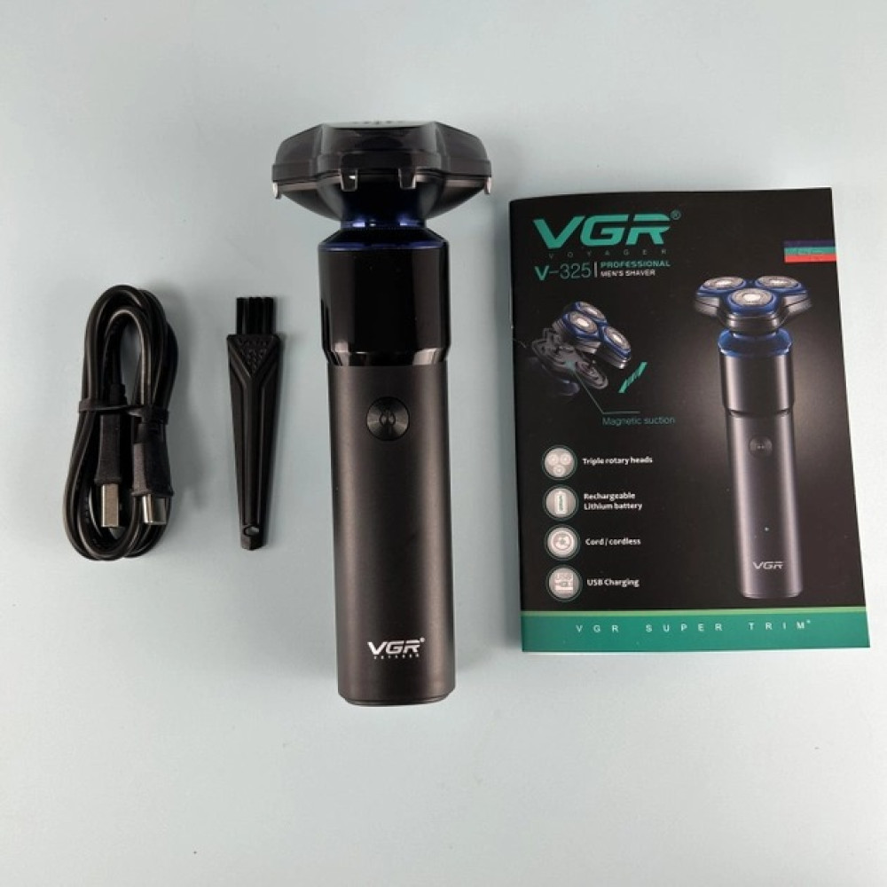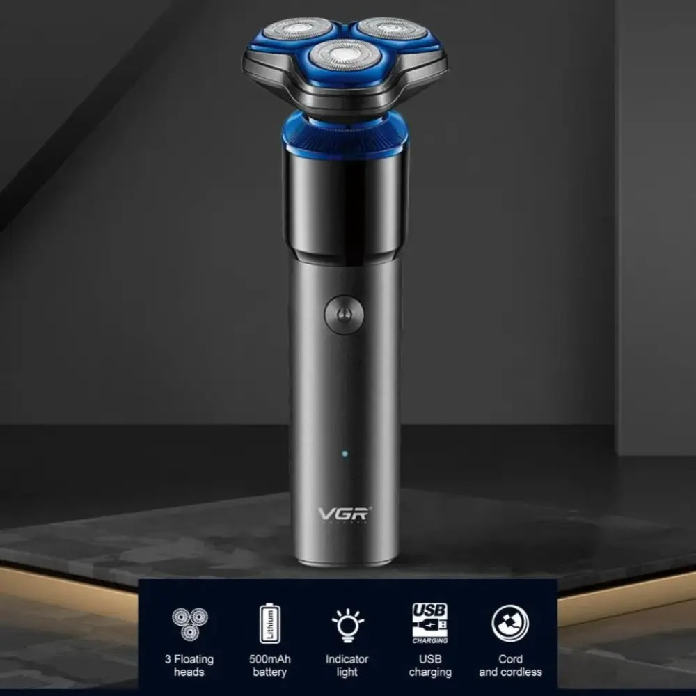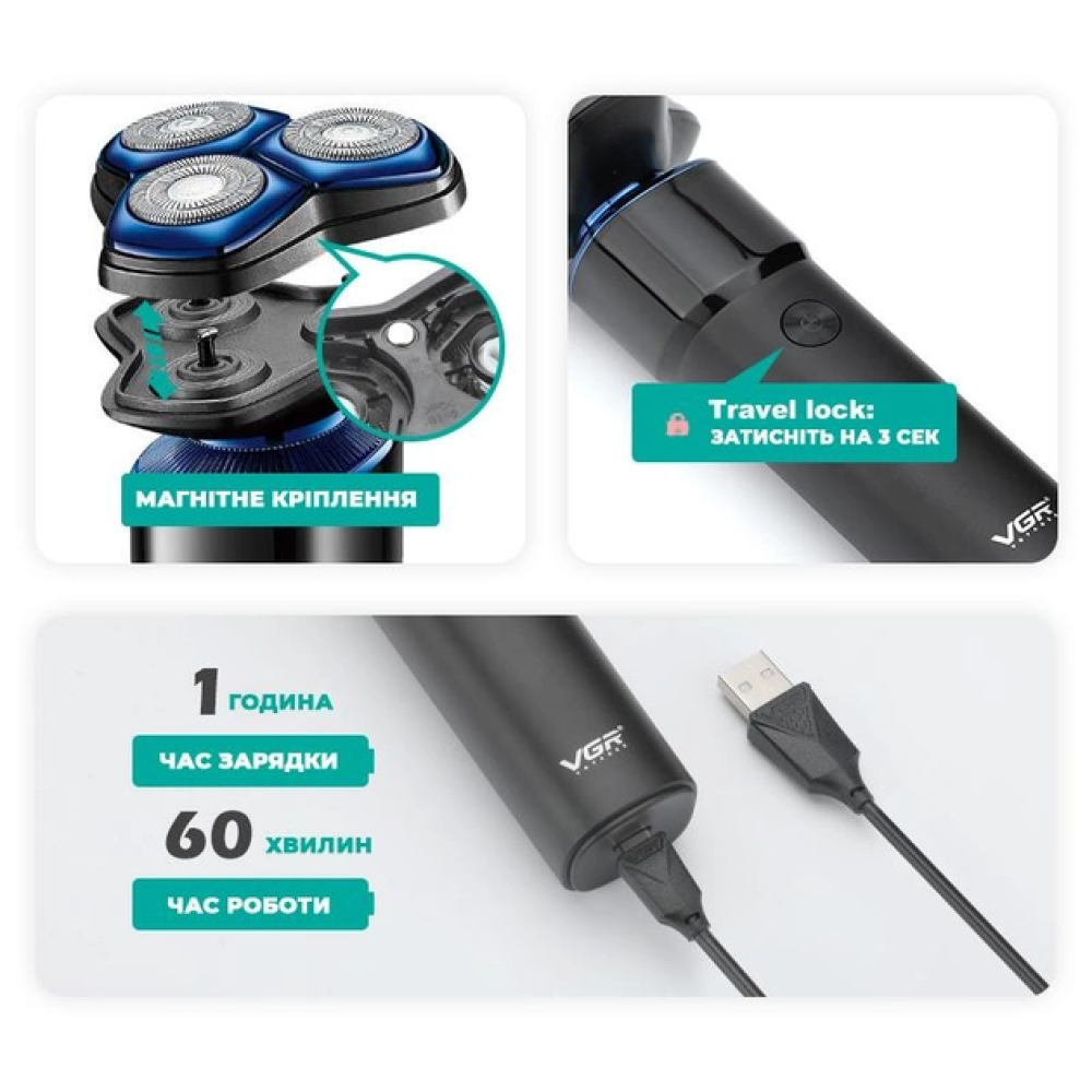 Електробритва для чоловіків роторна для вологого та сухого гоління водонепроникна VGR IPX6 (V-325) 3D-плаваюча головка - щільно прилягає до шкіри на 360 градусів, ідеально відповідає вигину обличчя та шиї, зводячи до мінімуму тиск і подразнення на шкірі.