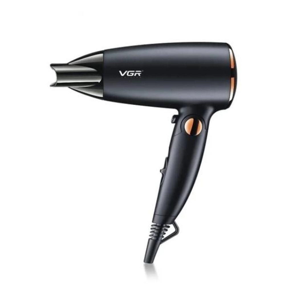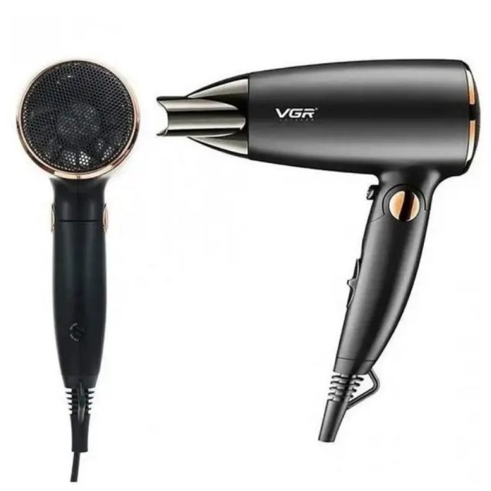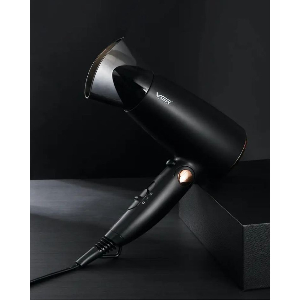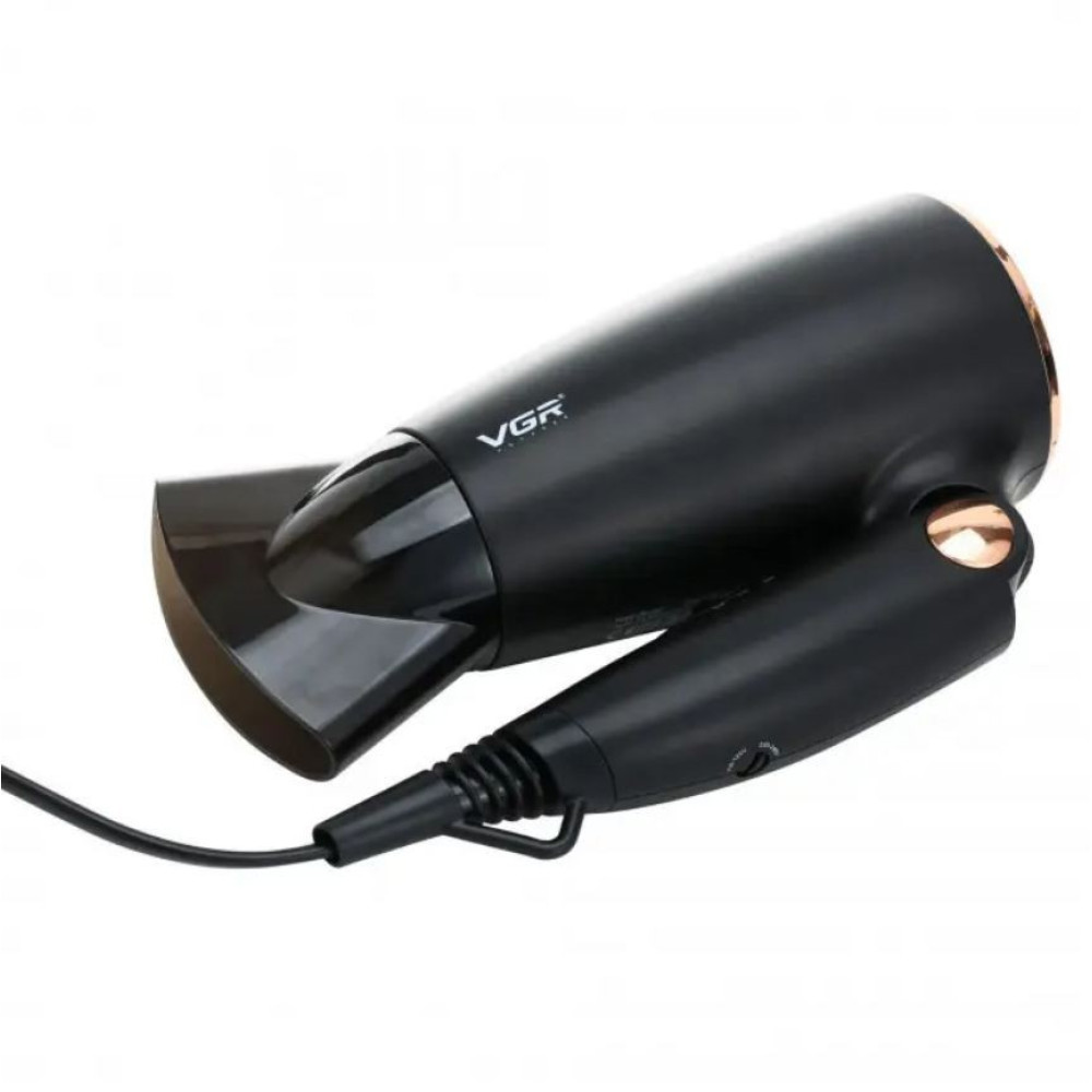 Фен зі складною ручкою для укладання волосся VGR потужністю 1600 Вт поєднує у собі витончений дизайн та доступну ціну, пропонуючи при цьому великий набір функцій. Цей універсальний фен надає вам не тільки можливість швидко висушити ваше волосся, але й акуратно вкласти його в бажаний стиль. Ручка фена, що складається, дозволяє заощадити місце при його зберіганні в сумці або валізі, роблячи його ідеальним компаньйоном в подорожах. Ви також можете регулювати швидкість потоку повітря та температуру нагріву, щоб підлаштувати фен під ваші індивідуальні потреби.