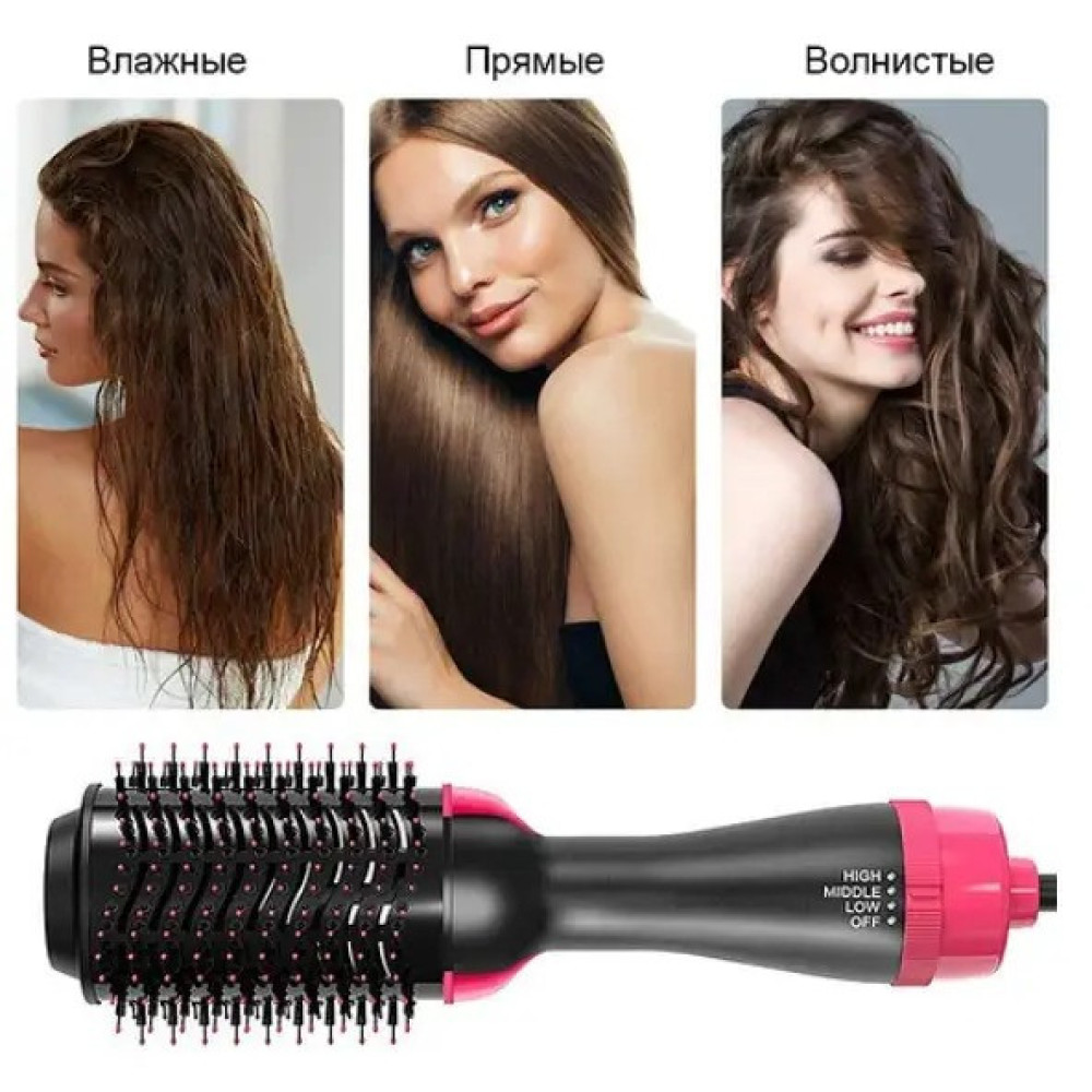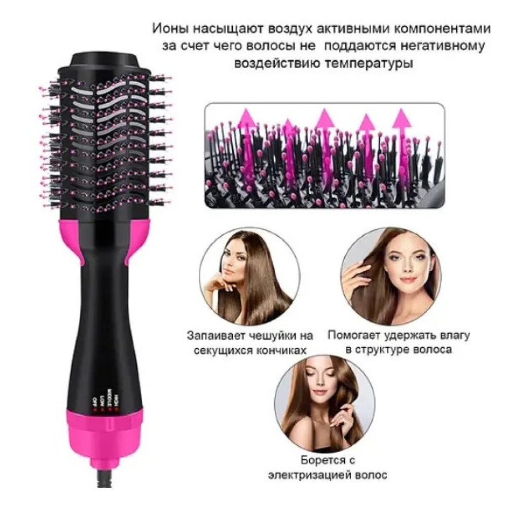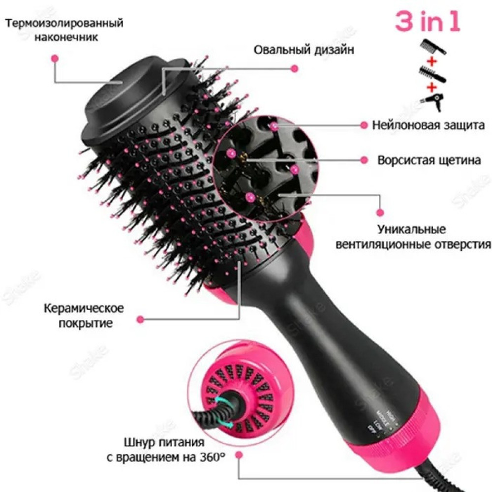 Фен - щітка для волосся One Step 3 в 1 допоможе жінкам добитися чудових завитків, великих хвиль, разючих прямих волосся для доповнення образу. Ви можете зробити своє волосся легким, розплутаним, надаючи шовковистий блиск. Гребінець дуже проста в експлуатації, а потужність в 1000 Вт забезпечує швидке і рівномірне нагрівання, заощаджуючи ваш час. Є три рівні нагріву для різних типів волосся. Керамічне покриття забезпечує рівномірне нагрівання, захищаючи волосся від термічних пошкоджень. Негативні іони насичують повітряний потік. Це допомагає кондиціонувати, розгладжувати та надавати блиск, прибираючи статику волосся