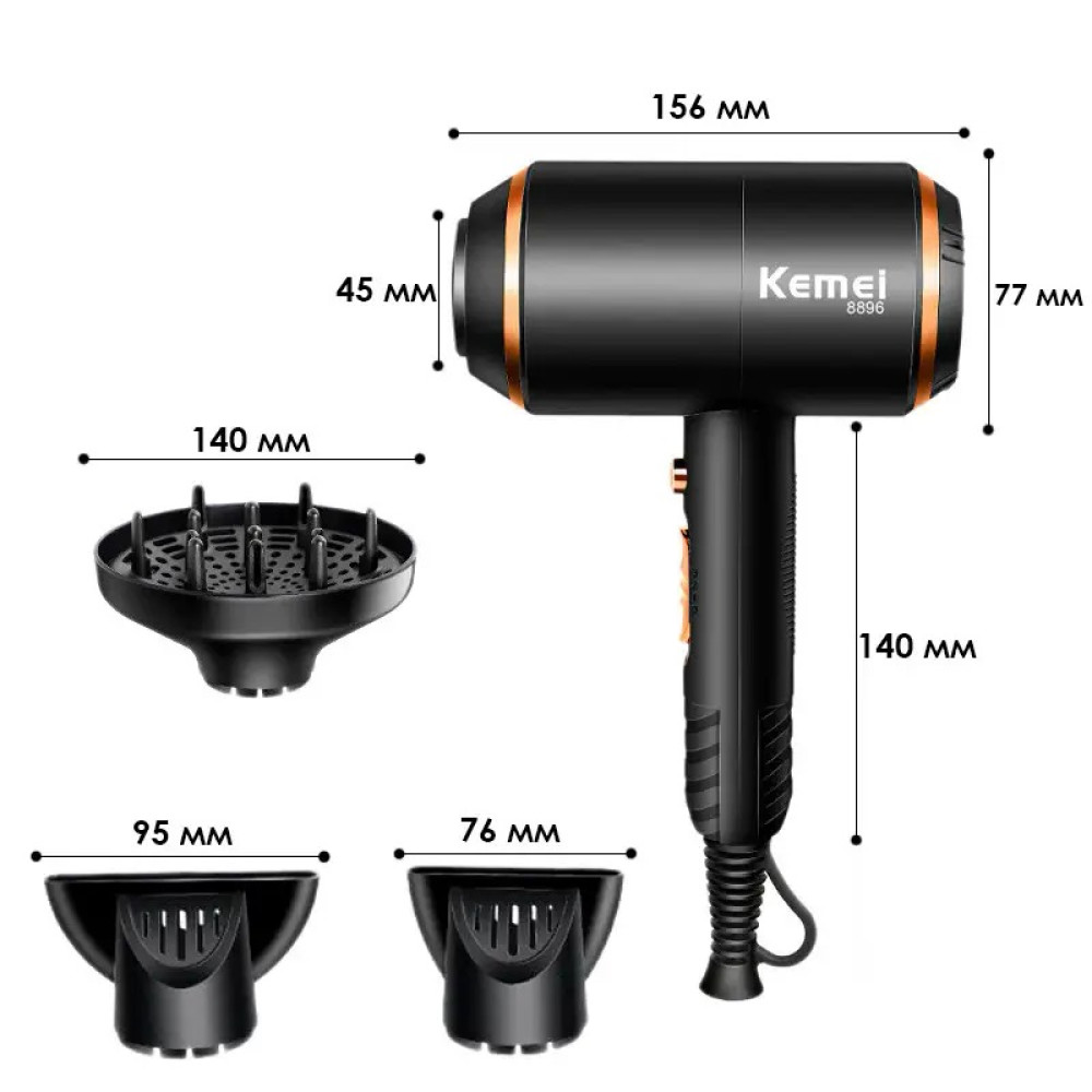 Професійний фен Kemei KM-8896 ніжно подбає про здоров'я Вашого волосся. Завдяки унікальній технології він не ушкоджує локони, а забезпечує їх захист від перегріву та пересушування. Навіть при щоденному використанні фен не зашкодить структурі волосся.