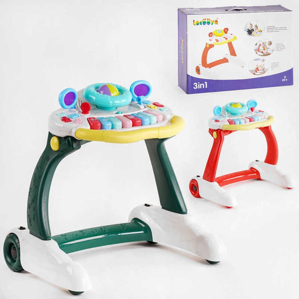 Ігровий центр 3в1 - це ідеальна іграшка для раннього розвитку Вашого малюка. Все, що необхідно для формування розвитку корисних навичок дитини, є в даної іграшці. Ігровий центр являє собою конструкцію з ручкою, на 4-х колесах зі знімною музичною панеллю.