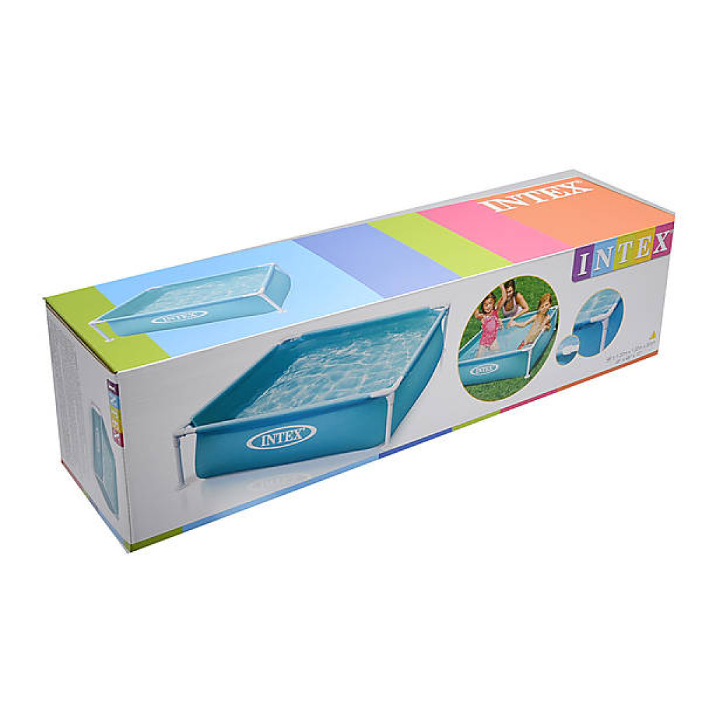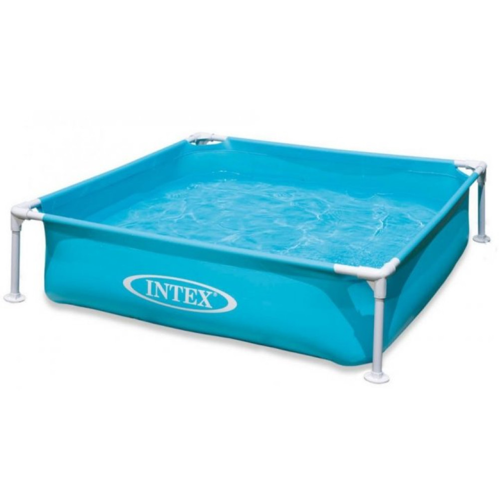 Невеликий каркасний басейн квадратної форми приємного блакитного кольору. Металевий каркас забезпечує міцність конструкції. Чаша басейну виконана з щільного 3х шарового вінілу товщиною 0,50 мм (стінки) та 0,25 мм (дно).
