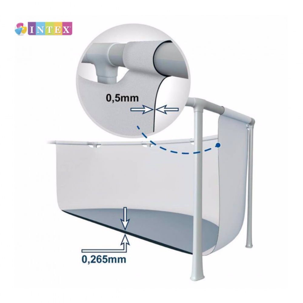 Каркасні басейни - це вироби, виготовлені з тришарового ПВХ, цей матеріал при правильному використанні перешкоджає утворенню тріщин, подряпин, проколів. Крім того, басейн має термоізоляційні властивості, вода в ньому триматиме початкову температуру тривалий час. Цілком виключена можливість витоку води.