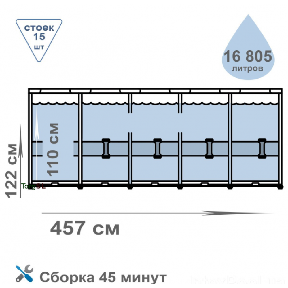 Каркас басейну, виготовлений з міцних оцинкованих труб, захищений від іржі і розрахований на досить високі навантаження.