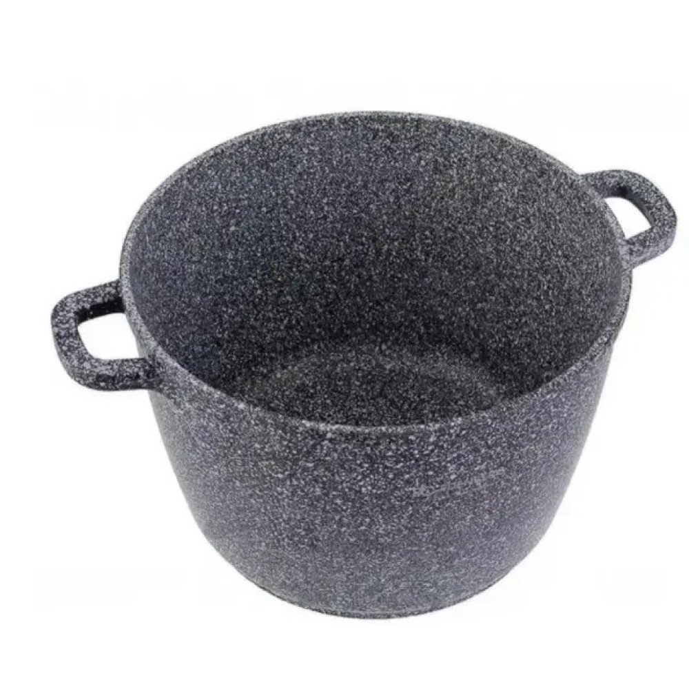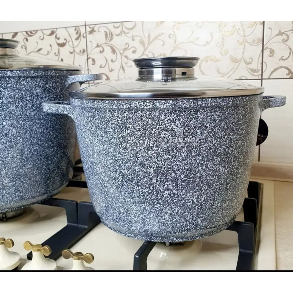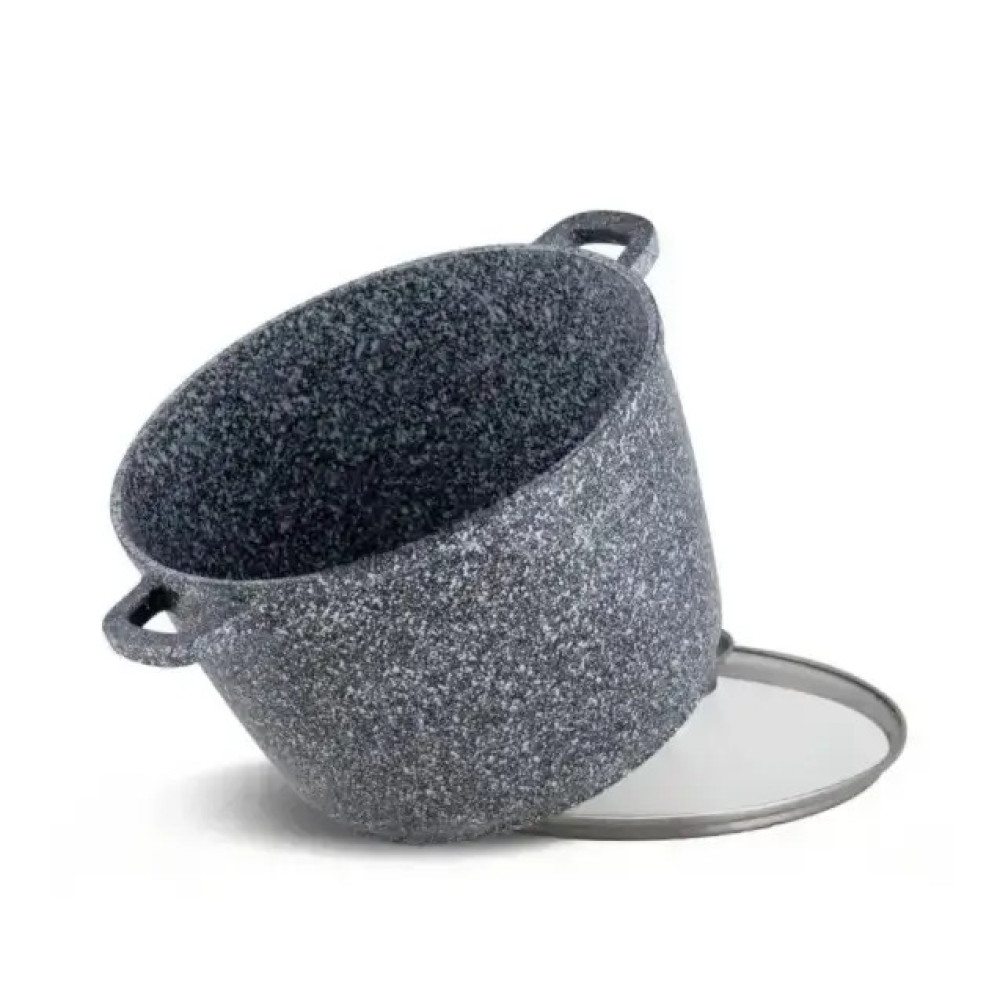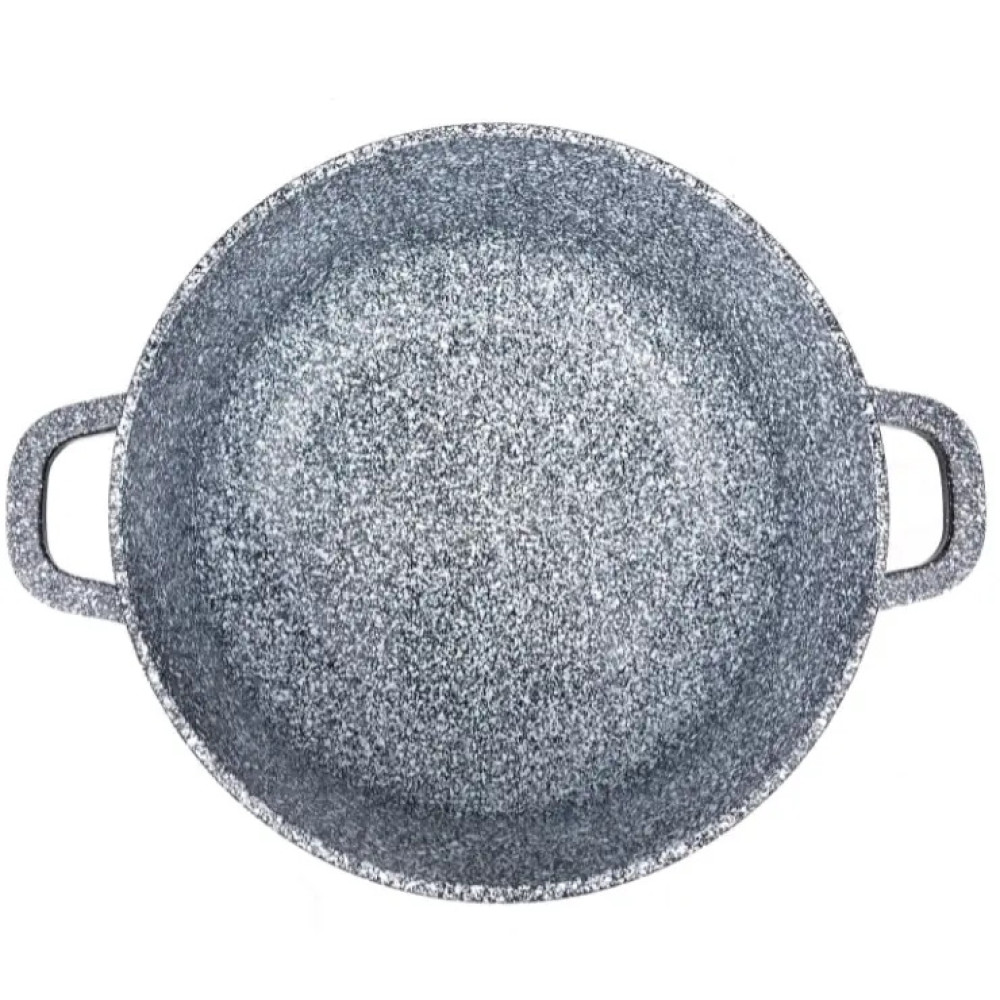 Незнімні литі ручки зручні, приємні на дотик - коли їжа приготується, Ви зможете швидко зняти посуд з вогню завдяки ним. Каструля має внутрішнє та зовнішнє гранітне покриття. Антипригарне покриття не дозволить їжі пригоріти або прилипнути до стін і дна. Після готування Ви легко зможете очистити казан самостійно, за бажанням можна відправити в посудомийну машину.