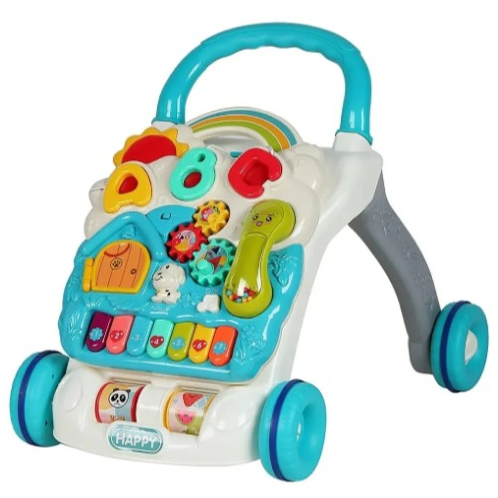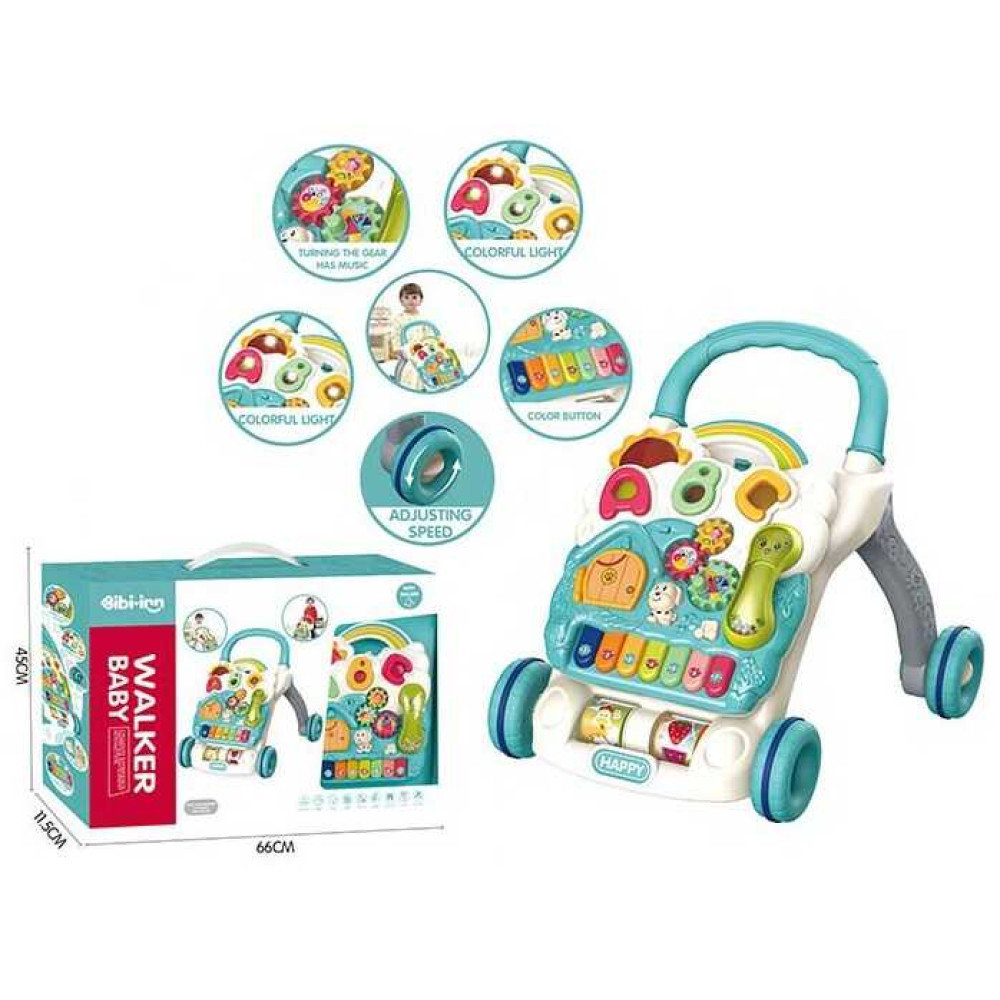 Каталка - ходунки музичні дитячі з музикою та світлом на батарейках Bibi-inn Walker Baby 698-60 зі знімною інтерактивною панеллю та англійською мовою Синій