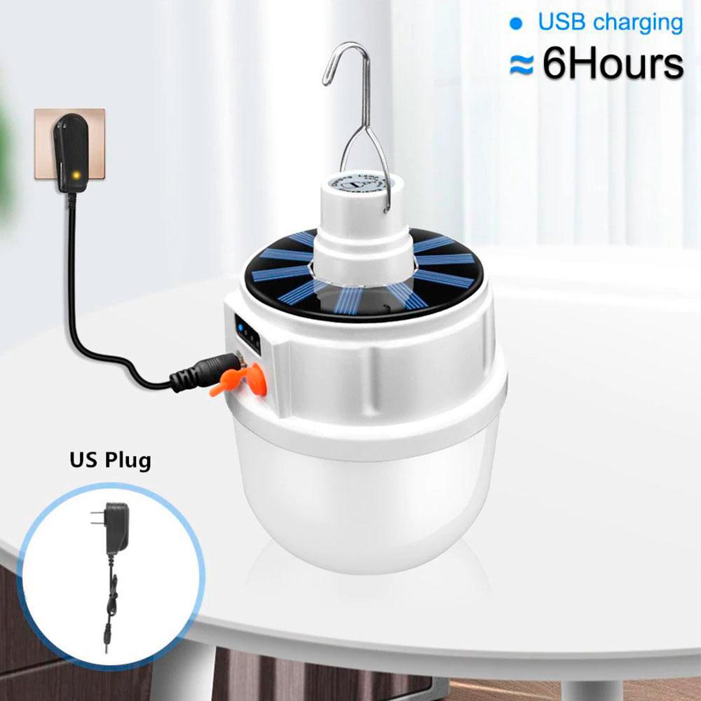 Акумуляторна кемпінгова LED лампа для використання в похідних умовах і не тільки. Це світлодіодна лампа зі зручним гачком, для перенесення або підвішування в наметі, над столом, над галявиною тощо. Ідеальний варіант автономного освітлення для походів, "дикого" відпочинку в наметах, риболовлі, пікніків, може використовуватися і на дачі, і в приватному будинку, і навіть у квартирі як резервне джерело світла. На ліхтарі є сонячна панель, що дає змогу заряджати пристрій від сонячних променів.