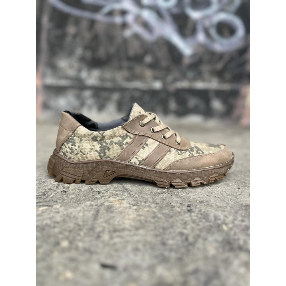 Тактичні кросівки весна/літо (койот-піксель). Виготовлені з натуральної цупкої шкіри із посиленою устілкою і вставок з Кордури. Призначені для пересіченої місцевості та військово-тактичних завдань.