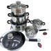 Також дуже легко чиститься і залишки їжі та жиру не збираються у кутах. Нержавіюча сталь високоякісна харчова сталь. Ефект швидкого нагрівання та рівномірного розподілу тепла, що запобігає пригоранню в процесі приготування. Цей набір буде гарним придбанням для сім'ї або чудовим подарунком на весілля чи ювілей, день народження, іменини, можна сказати у будь-яке свято.