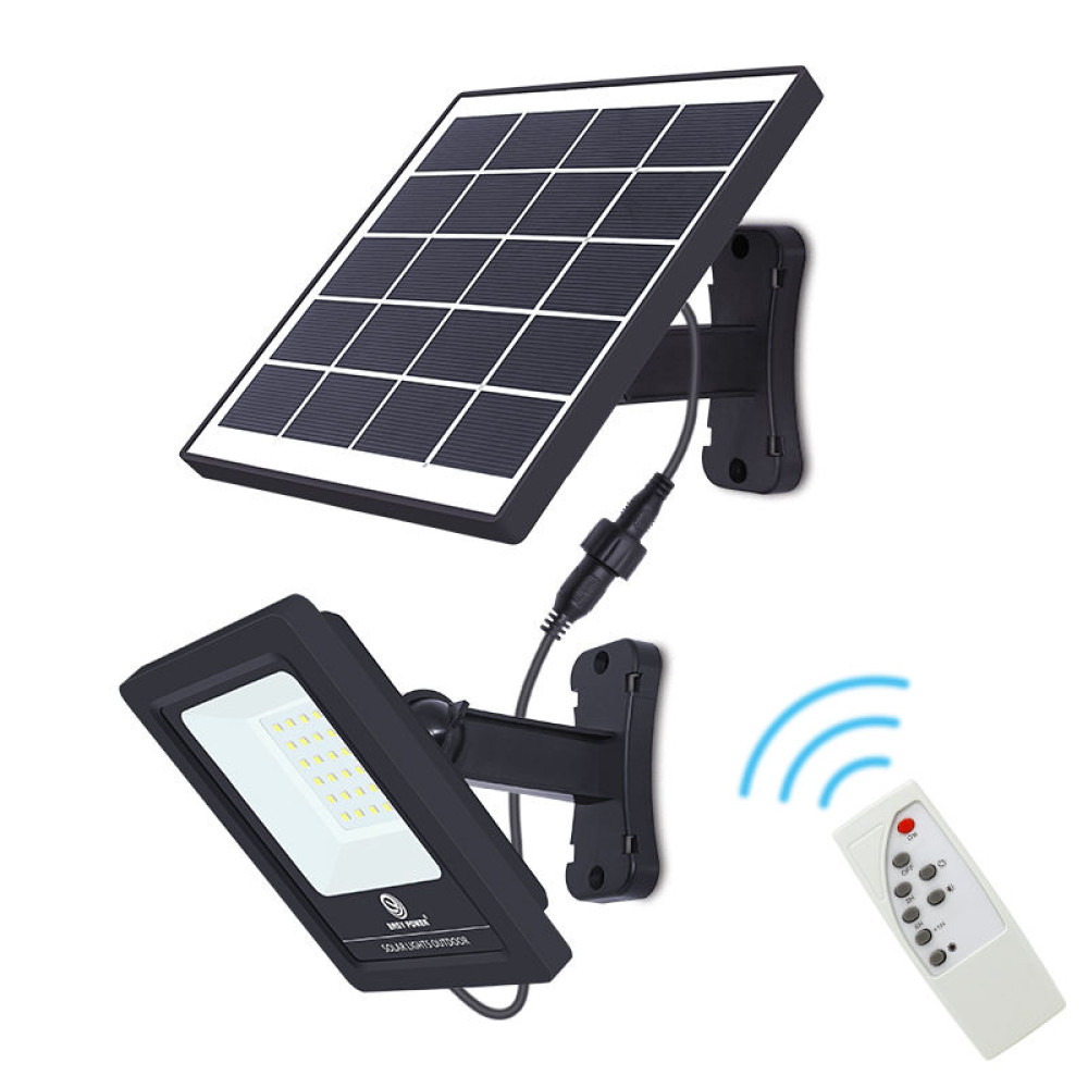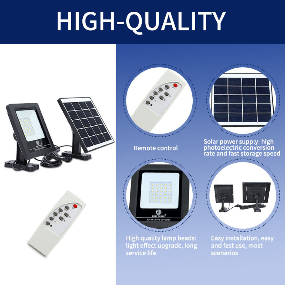 Світлодіодний прожектор на сонячних батареях з автоматичним/дистанційним керуванням: автоматичне увімкнення/вимкнення, прожектор на сонячних батареях автоматично вмикається в сутінках і вимикається на світанку. Литий під тиском алюміній та світлодіодний вихід з яскравістю 60 градусів для охоплення ширшого кута біля портативний для використання в місці без проводової розетки; це дуже зручно і, до того ж, економічно. Високоефективна фотоелектрична сонячна панель з полікремнію, вона може перетворювати до 17% сонячної енергії на електричну. Швидка зарядка до повного заряду за п'ять годин, Можлива зарядка в похмурі дні, 6600 мАг, 3,7 літій-іонний акумулятор Забезпечує в середньому 6-8 годин безперервного освітлення при повній зарядці.