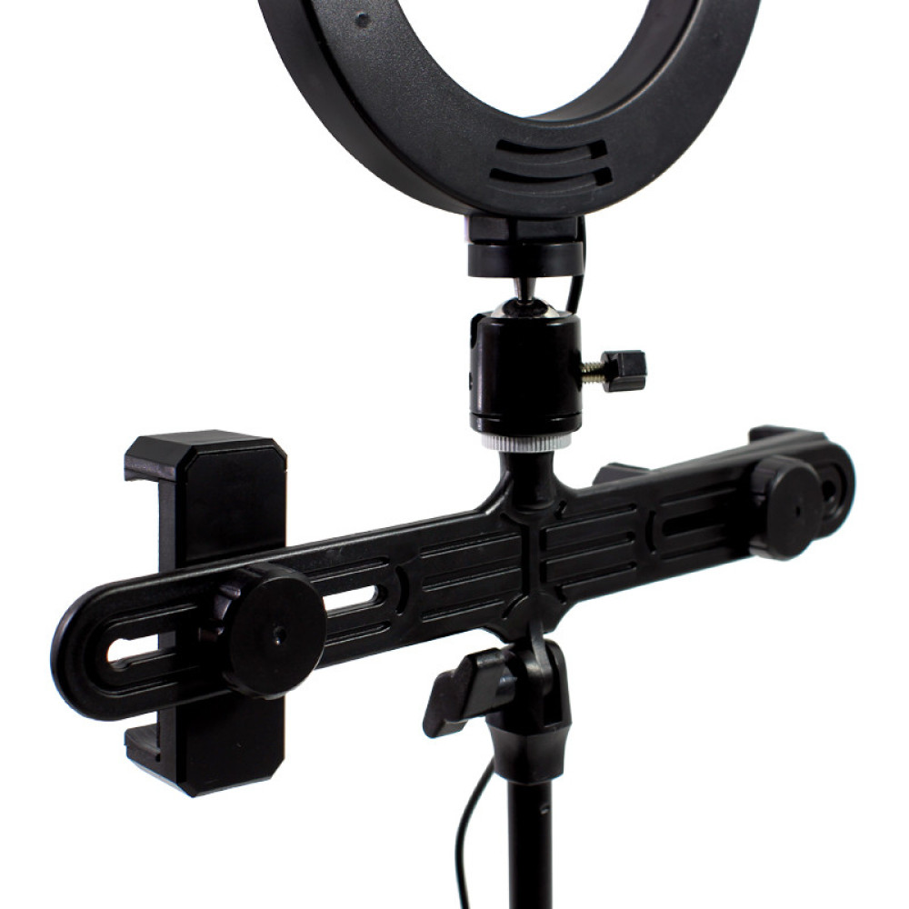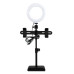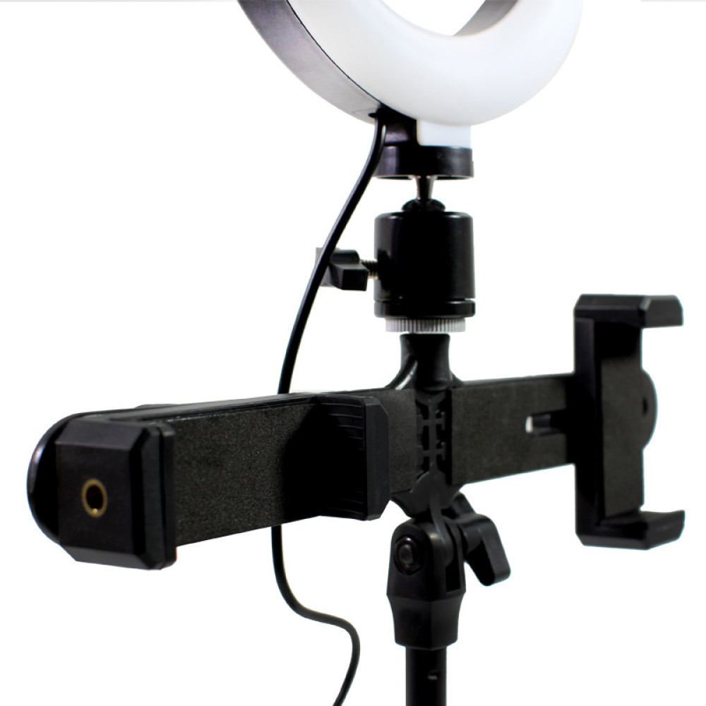 GINZSH KH-20 – багатофункціональний гаджет, який допоможе у записі відео без сторонньої допомоги, та забезпечить вас яскравим джерелом світла. Утримувач сумісний з більшістю смартфонів та має можливість регулювати ширину захоплення. Так, мінімальна можлива ширина – 60 міліметрів, максимальна – 80 міліметрів. Стійка підставка дозволяє робити зйомку з будь-якої горизонтальної поверхні. А вертикальний штатив дає можливість регулювати висоту до 650 міліметрів. Темний час доби і нестача природного освітлення часто стають перешкодою для зйомки. Але тільки не з GINZSH KH-20. Завдяки кільцевому джерелу світла, ви зможете знімати у будь-який час та за будь-яких обставин. Лампа діаметром 160 мм, живиться від USB. Довжина дроту становить 1,96 метра, що дає змогу розташувати місце зйомки практично у будь-якій частині кімнати. За допомогою кнопки керування на дроті, ви зможете дистанційно вмикати, вимикати лапу, змінювати режим та яскравість свічення. Кут нахилу лампи легко регулюється та підлаштовується під потреби користувача Три вбудовані режими свічення (теплий, холодний та комбінований) – одна з головних переваг пристрою. Воно робить картинку максимально приємною та яскравою. Не менш важлива якість матеріалу, з якого виконано утримувач, адже це гарантує стійкість та безпеку вашого мобільного пристрою. ABS-пластик – ударостійкий, приємний на дотик матеріал, з високими показниками захисту від зовнішнього впливу. Вся конструкція повністю розбирається та має компактні розміри у складеному вигляді. Ви легко зможете зберігати пристрій та при необхідності брати його з собою у подорожі. GINZSH KH-20 – незамінний атрибут блогера будь-якої категорії, від новачка до досвідченого фахівця. З ним ваш контент набуде нових яскравих фарб, а разом з тим і нових глядачів.